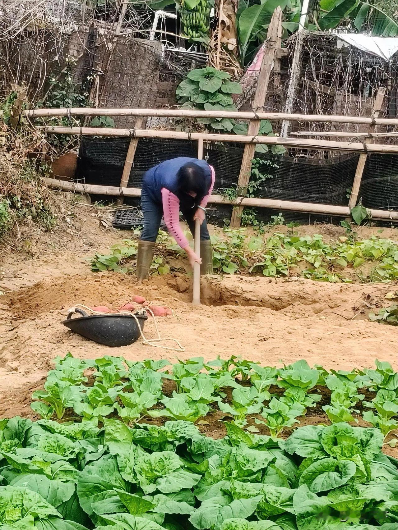 谁懂啊!挖番薯这事儿,越挖越上头! 刚刷到这画面直接看馋了——你看这大姐的胶靴陷在松松软软的沙泥里,一锄头下去,红通通的番薯就露了半个脑袋,旁边的簸箕里已经躺了好几个“胖娃娃”~ 地头的青菜叶子油绿得能掐出水,后墙那串香蕉还挂着没摘,竹栅栏上缠的藤蔓都带着土腥味——这哪是干活啊,分明是把日子种成了想吃啥就挖啥的快乐! 小时候跟着外婆挖番薯,总爱抢着刨土,结果要么把番薯铲成两半,要么糊得满脸泥,现在看这场景,满脑子都是刚蒸好的番薯冒着热气,剥了皮甜得粘手指。 原来最踏实的幸福,从来都是地里长出来的、手里攥着的烟火气啊!晒图笔记大赛