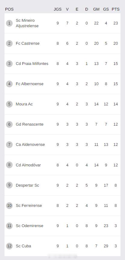 葡萄牙贝雅大区甲级联赛(5) 王牧截至上周末,阿尔茹什特雷尔矿工取得7胜2平0负、进22球丢4球,高居榜首。司职中场的22岁中国球员 王牧 出场8次,其中5次首发,场均出场64分钟。 阿尔茹什特雷尔矿工俱乐部坐落在同名小城阿尔茹什特雷尔,该地以丰富的矿产资源和地质遗产闻名。历史上,球队曾在1949至51年征战过葡萄牙第二级别联赛。