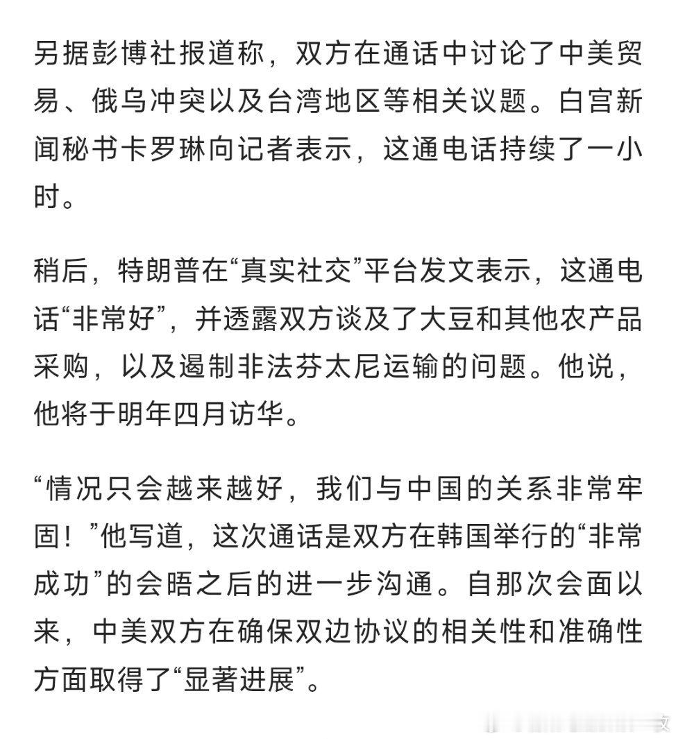 特朗普:将于明年4月访华!