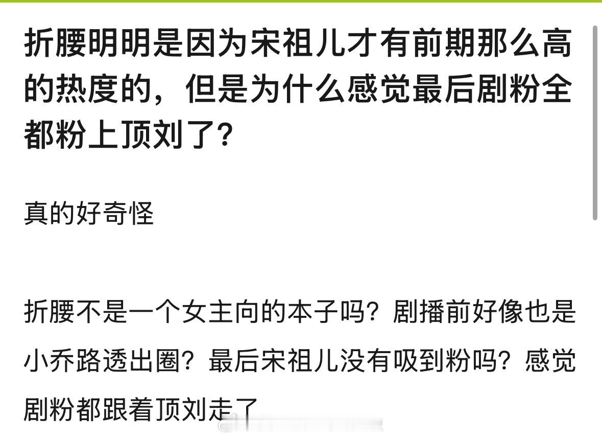 网友问,明明是因为宋祖儿才有前期那么高的热度的,但是为什么感觉最后剧粉全都粉上刘宇宁了?