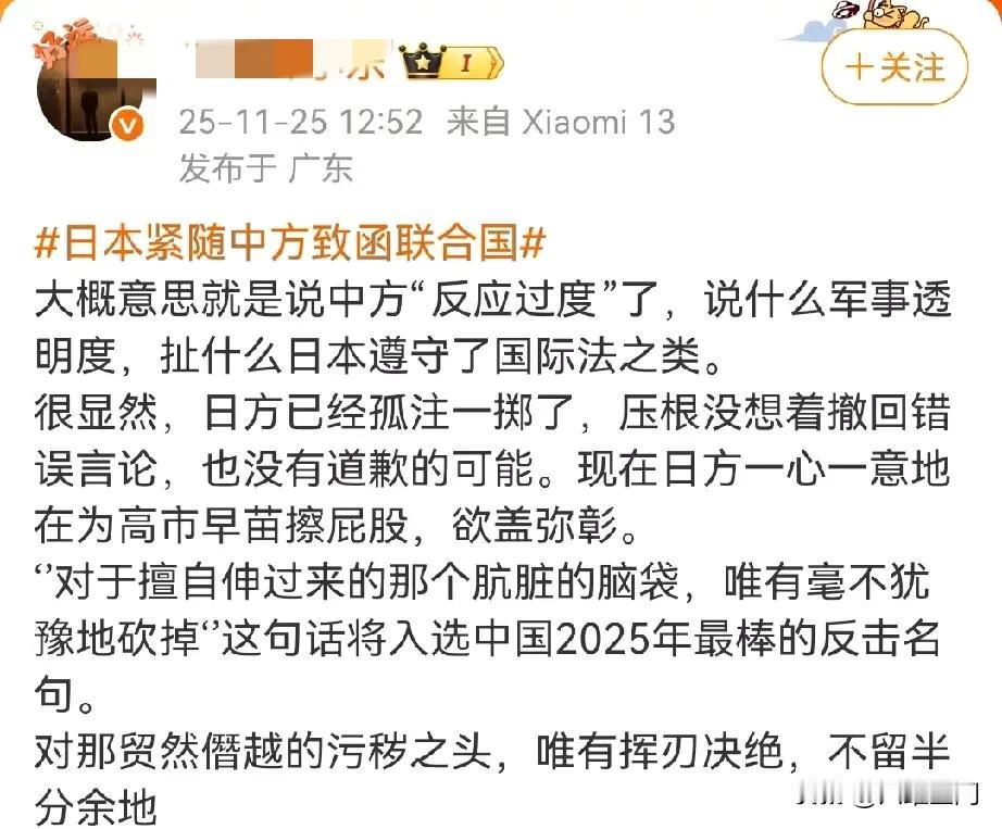 我们致函联合国重申敌国条款后,日本也紧跟着致函联合国,说是我们反应过度了,说它们日本会遵守国际法! 其实挺感谢高市早苗来这么一下子,把一切都激活了,要不然我还真的没有发球的机会,现在球已经我们手上了,把琉球和敌国条款都搬出来了,还有波茨坦公告规定的日本的领土只有本州四岛,其他的都是非法领土,这些东西真正的二战后的国际秩序都重新回到人们的视野,这次我们为什么拉高声调,跟之前佩洛西窜访是一个道理,就是要实质的推进一些事情,才会拉高声调,表面上看起来我们吃亏了,实际正中我们下怀!