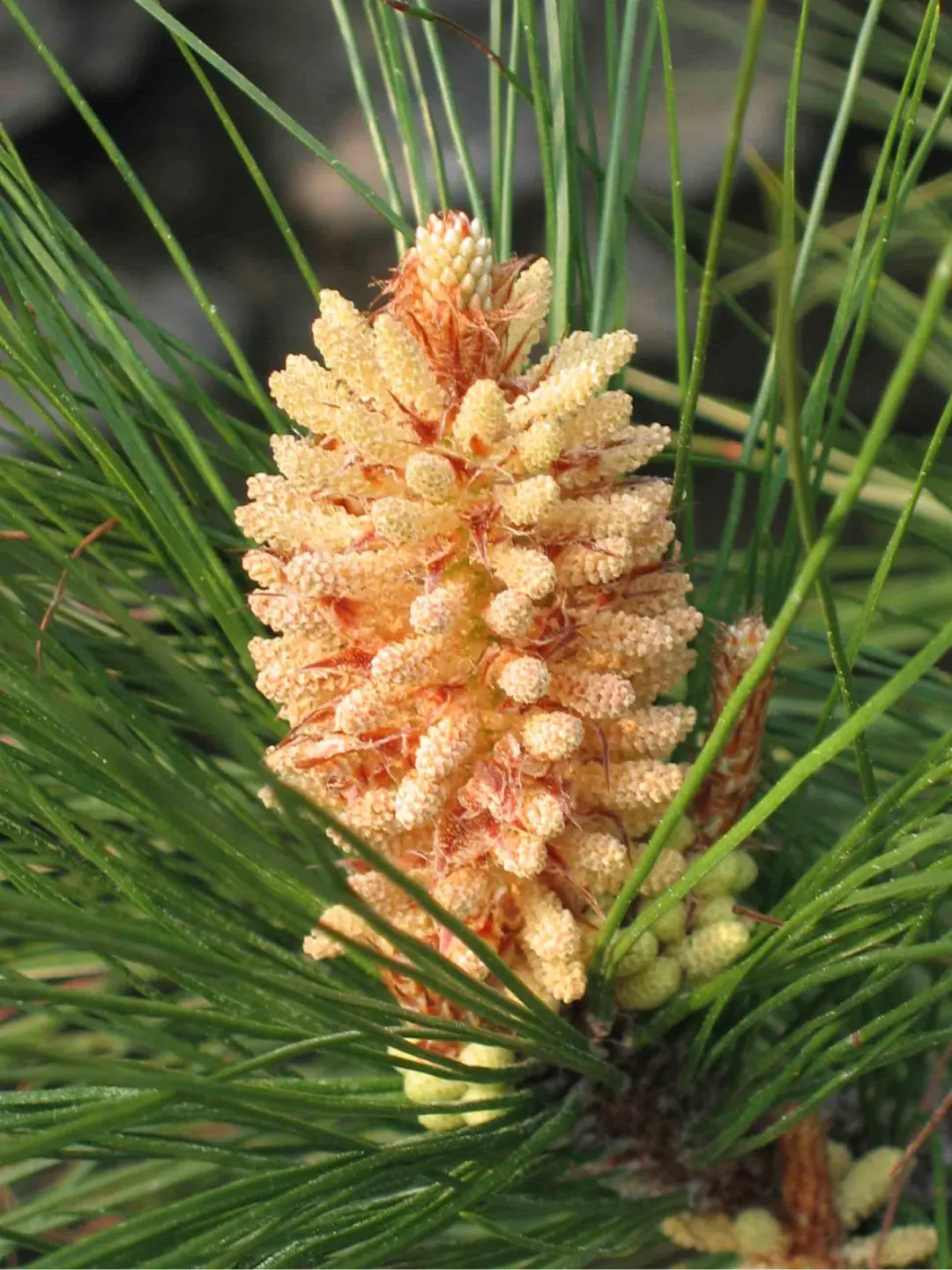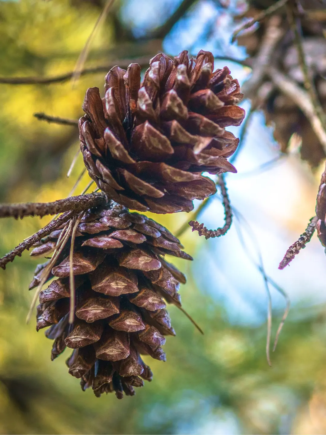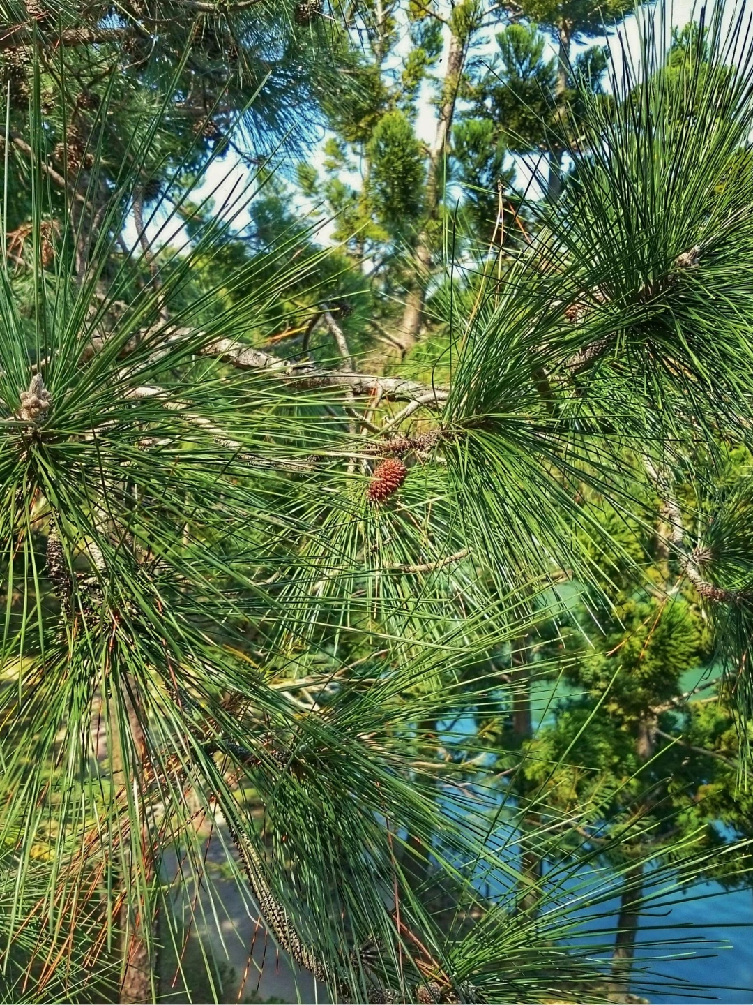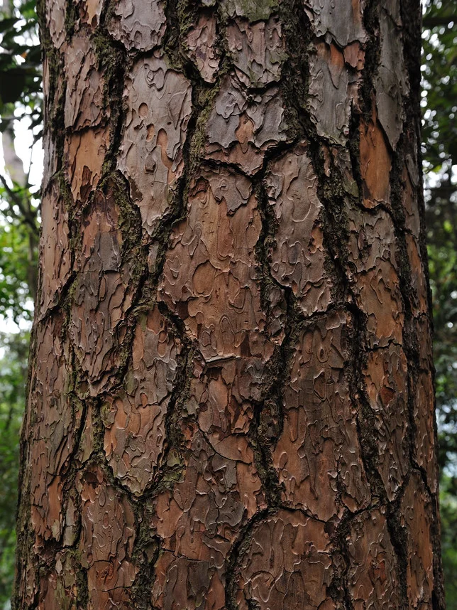 马尾松的名字来源于细长形似马尾鬃毛的叶子,除了这一点之外,马尾松身上还有许多有趣的特征,比如说:它的树皮斑驳如同老龙的鳞片,而且常常会小片小片地自己剥落下来;剥落下来的松麟背面有许多规律的曲线纹路,就像被虫子打的洞一样。说到松树就不得不提松果,马尾松也有松果,但如果你想在里面找松子可能就要失望了,它们的松子只有米粒大,被包裹在翅膀一样的薄膜中国,依靠风力传播。