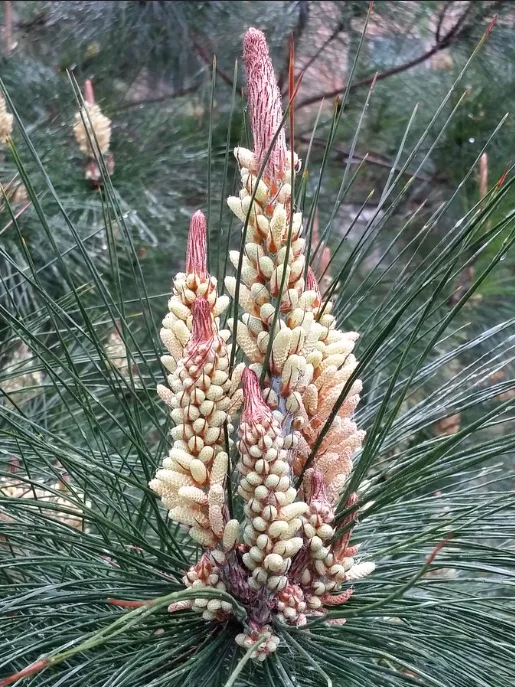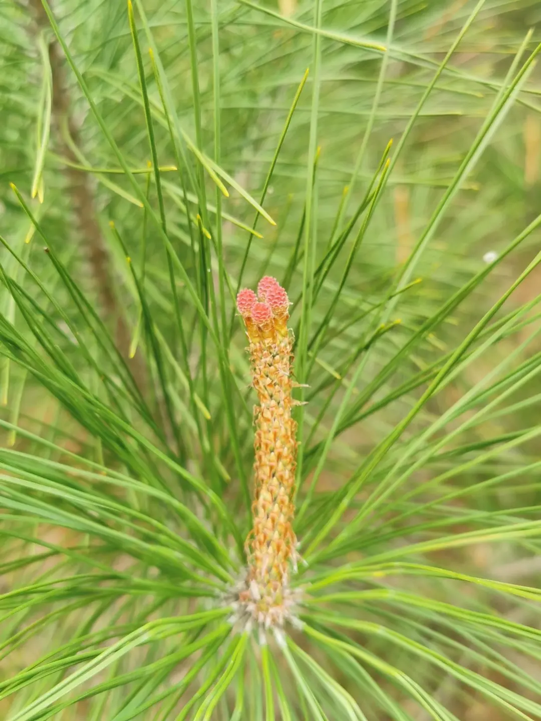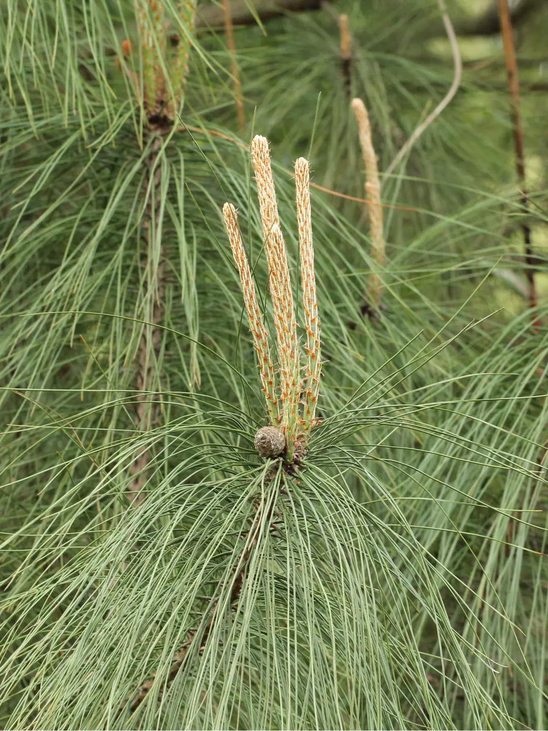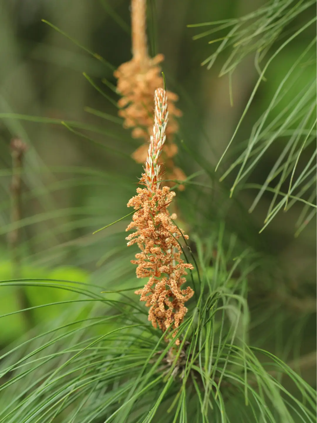 重庆周边的山里,最常见的松树大约就是马尾松了。它的叶子总是两针成一组,再由许多组针叶共同构成一束。当一组叶子的寿命到头了,它们便会脱落下来,所以我们就会看见生活在松树下的植物,总是挂满了一把把的“镊子”,常常让人误以为是有人在恶作剧。