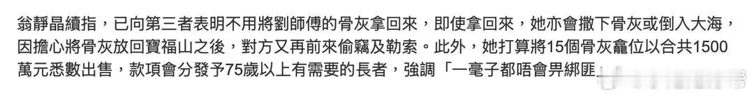 翁静晶出售刘家良骨灰龛位,售价1500万,称已不打算要回先夫骨灰!