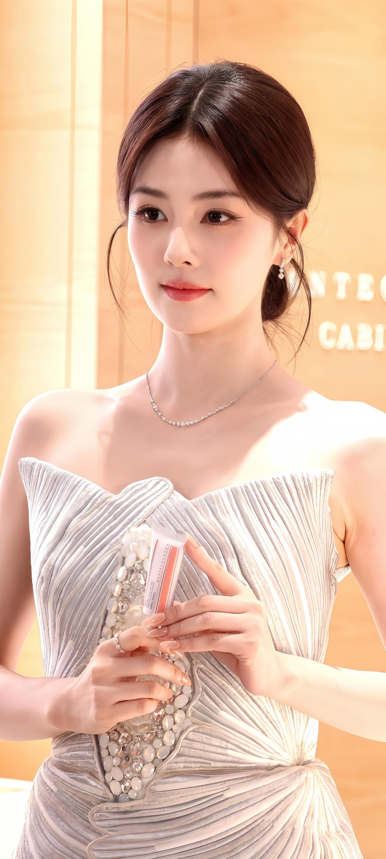 白鹿这是什么甜度暴击啊!银灰月光裙也能穿出软萌感~ 抹胸设计露出圆润肩头,胸前的珍珠碎钻像撒了把糖霜,甜滋滋的贵气感直接拉满!腰侧扭结把腰线掐得软软糯糯,沙漏身材也带着点少女的娇憨,完全没有距离感。 盘发梳得蓬松又乖巧,碎发贴在脸颊刚好修饰脸型,举着香槟杯笑起来时,眼睛弯成月牙,连眼神都在发甜~ 生图里的皮肤白到发光,状态好到像刚喝饱露水的小仙女! 从古装剧里的灵动小师妹到现代甜妹天花板,她的颜值总能甜到心坎里,这套月光裙更是把“甜而不腻”拿捏得死死的~ 👉 你被白鹿这波甜妹暴击戳中了吗?分享唯美的美照 白鹿 白鹿造型图片 时尚穿搭 气质女明星