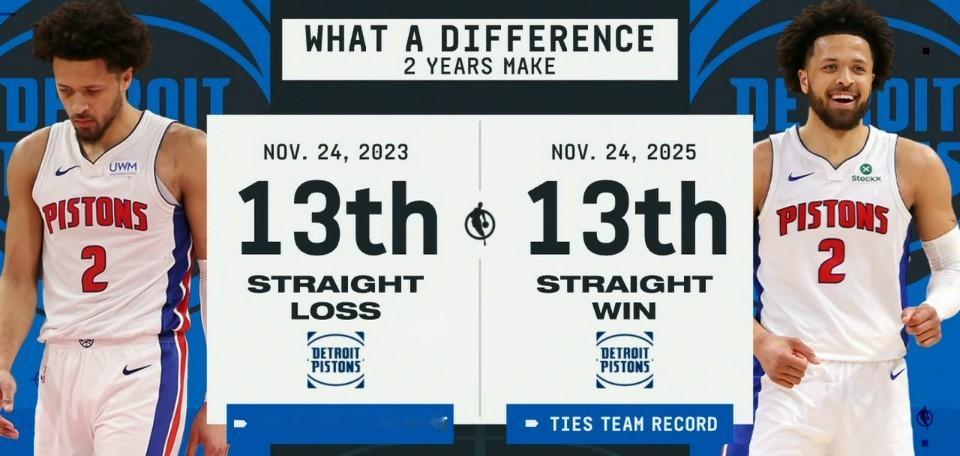 ▲2年前这时候,活塞还在13连败之中▲2年后已经13连胜了