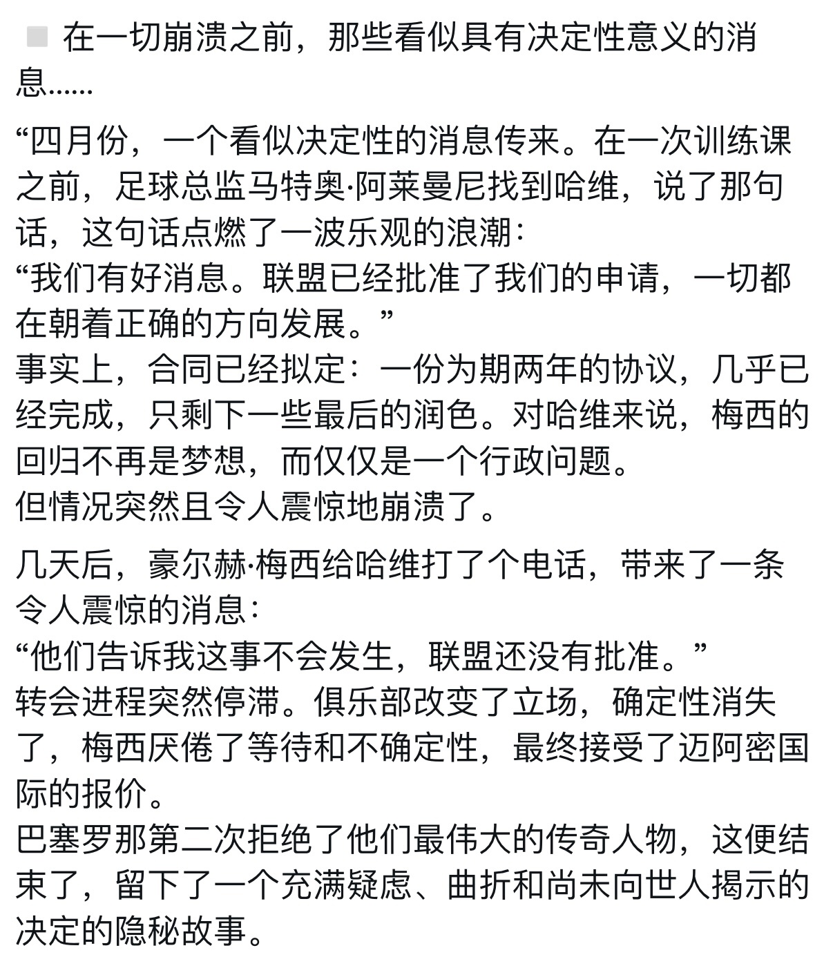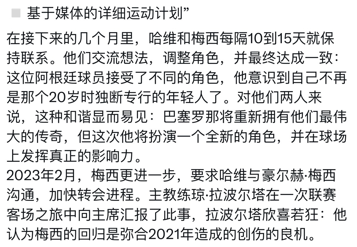 《Sport》提到巴萨第二次派哈维欺骗梅西