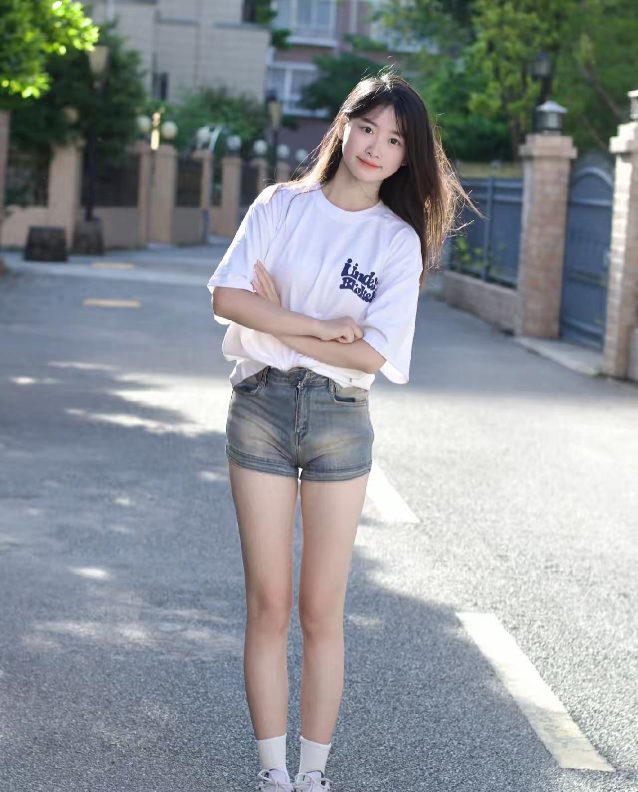 夏日清新穿搭,白色T恤+牛仔短裤,元气满满!🌞👗👟