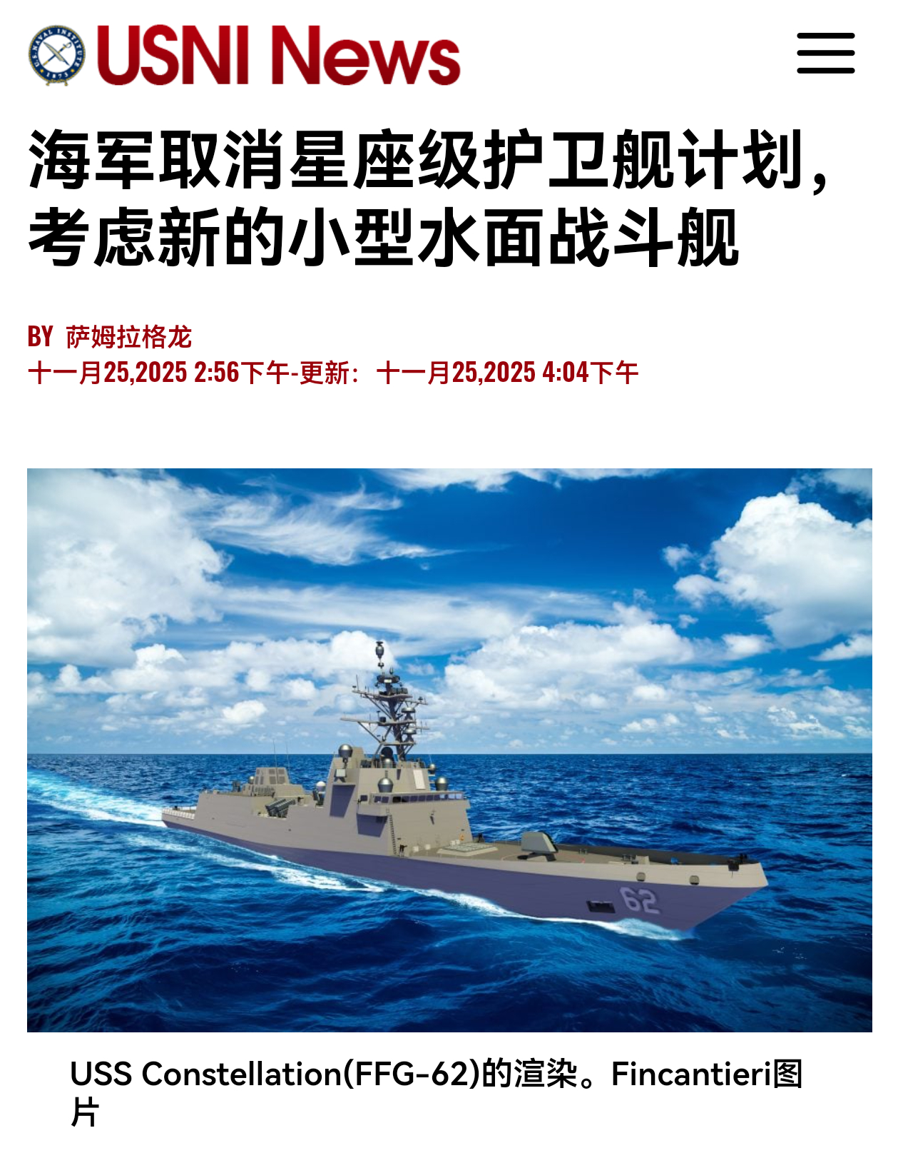 如果连星座级这种定位廉价和快速,且基于成熟设计的护卫舰项目都要取消,那我怀疑当下美国造船业到底有没有能力设计建造一款全新的水面作战舰艇。烽火问鼎计划热点观点