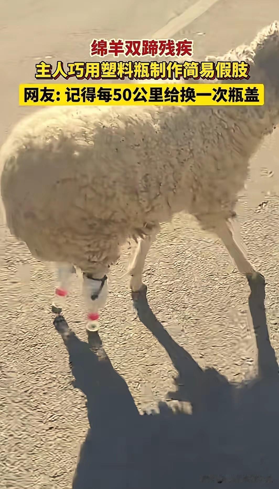 “人怎么可以这么聪明?”西 藏,一只小羊因寒冷冻坏了双蹄,再也无法站立行走。本以为此生只能躺平,结果主人急中生智,竟然用塑料瓶为它做了一副假肢!网友笑评:这办法绝了,50公里只消耗俩瓶盖儿! 看着小羊套着剪开的塑料瓶,摇摇晃晃重新站起来的模样,你不得不佩服这种源于生活的智慧。没有高科技材料,没有复杂的预算,就是手边最常见的塑料瓶,经过剪裁、烘烤、填充软布,再绑在小羊的残肢上,一副充满生命力的简易假肢就诞生了。这让人想起那些为瘫痪小狗制作滑轮车的主人,或是给骨折绵羊特制假肢的技师,其中涌动的情感是共通的——对生命的尊重,总能让人们爆发出惊人的创造力。