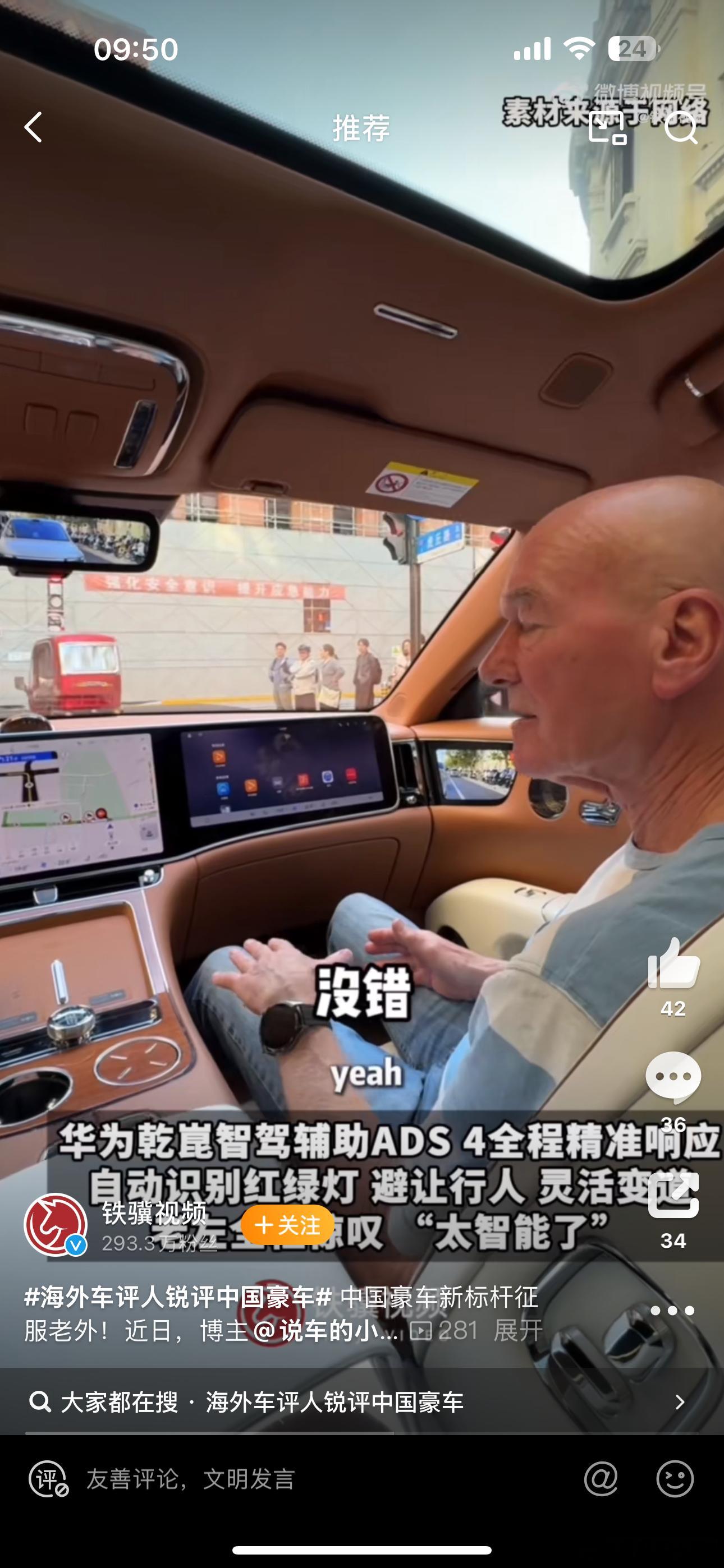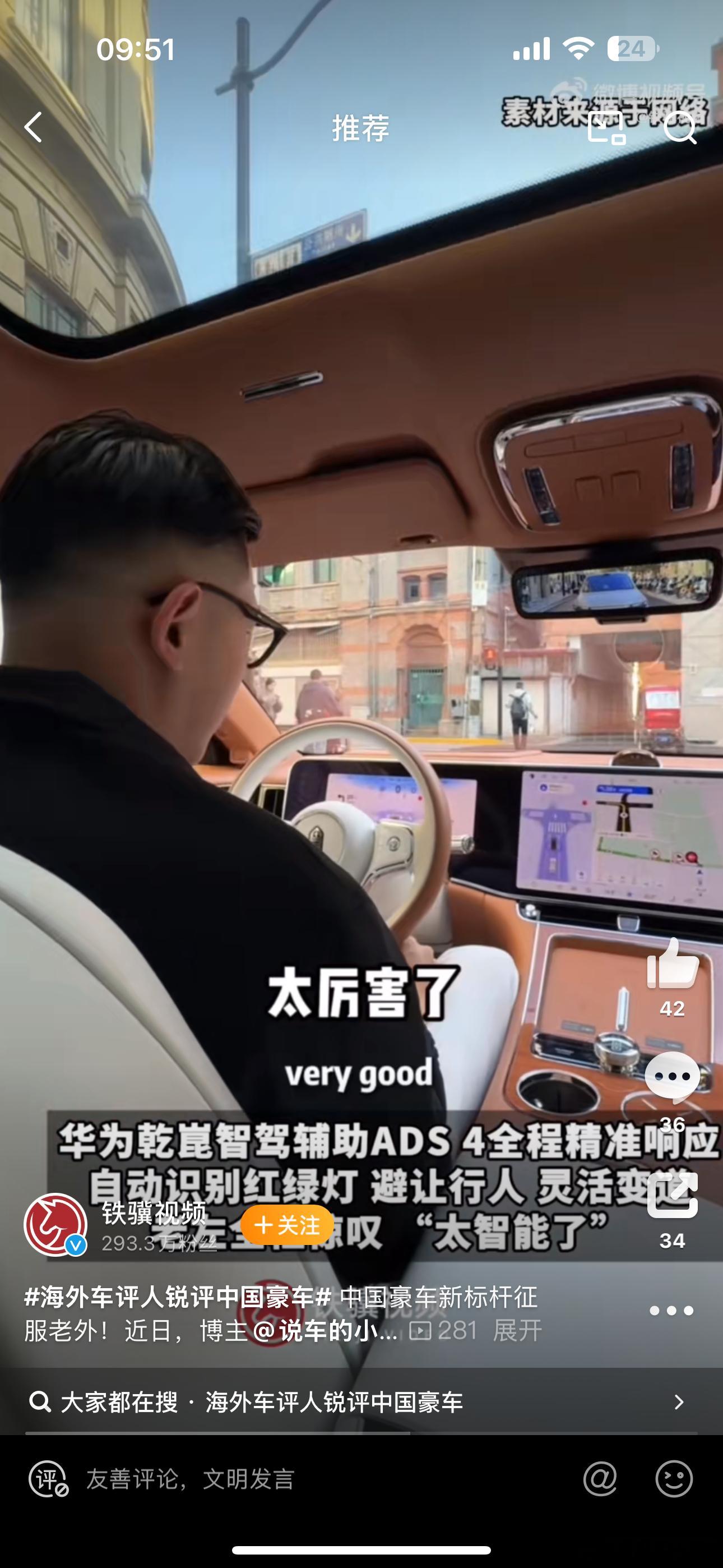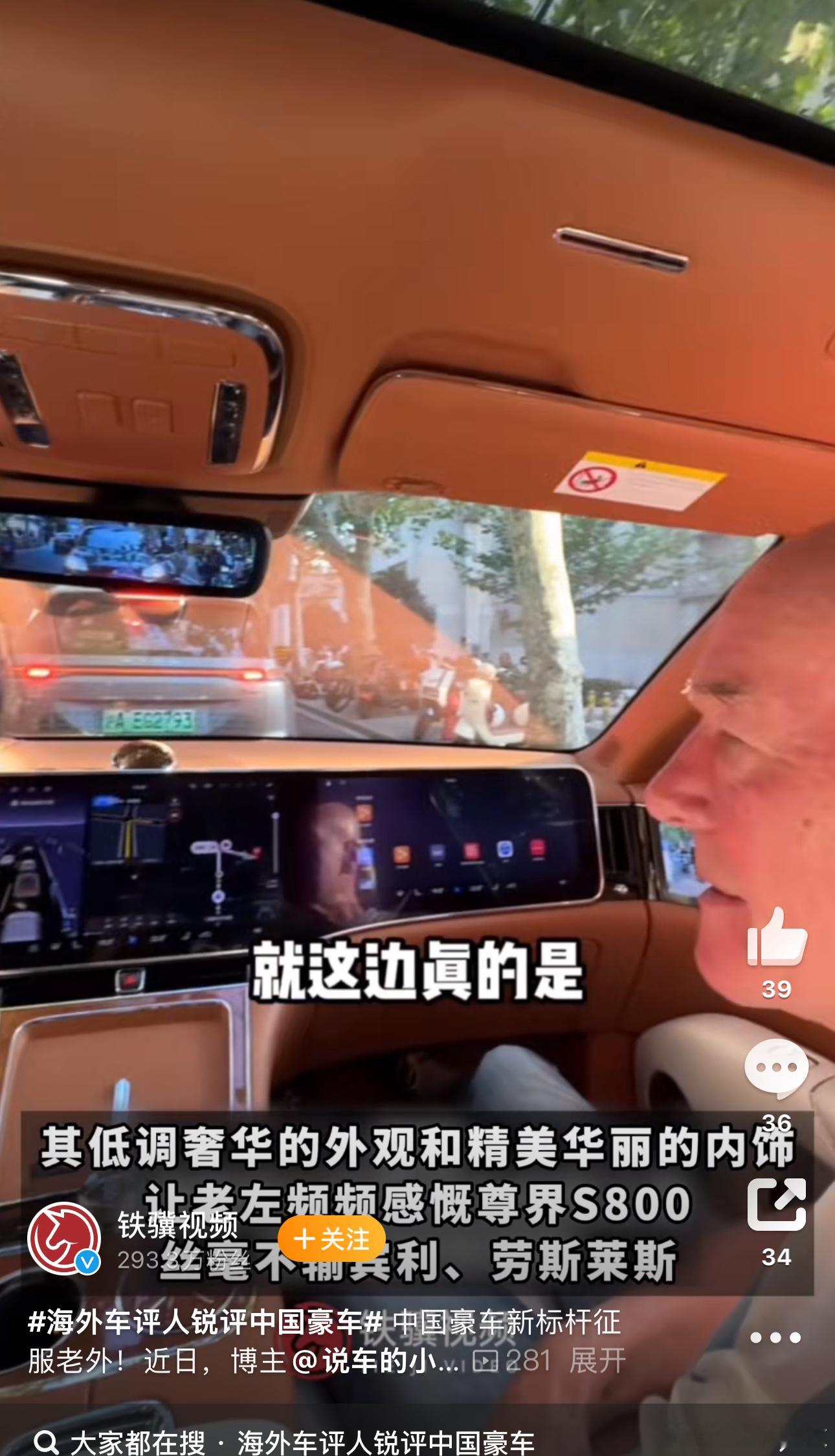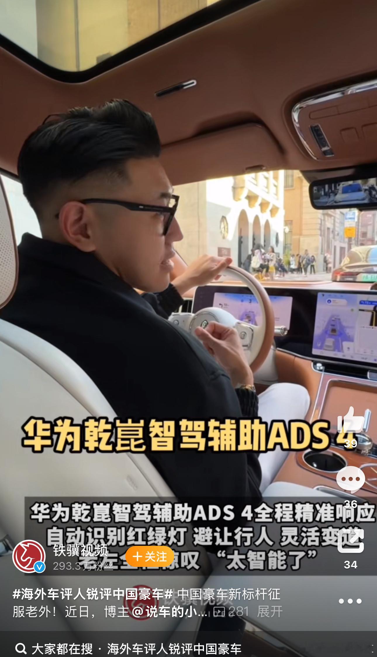 有些车是堆料,尊界S800是实打实的“堆智商”。看了老左的试驾反馈,他对这车的智能化水平简直是赞不绝口。尤其是华为乾崑智驾ADS 4.0在窄路避让行人、过隧道变道那种从容劲儿,连老司机都得服。以前总觉得豪车只要坐着舒服就行,现在看了S800才知道,原来豪车开起来也能这么轻松智能。这就是中国智造的实力,不得不服。海外车评人锐评中国豪车中国超豪车海外出圈
