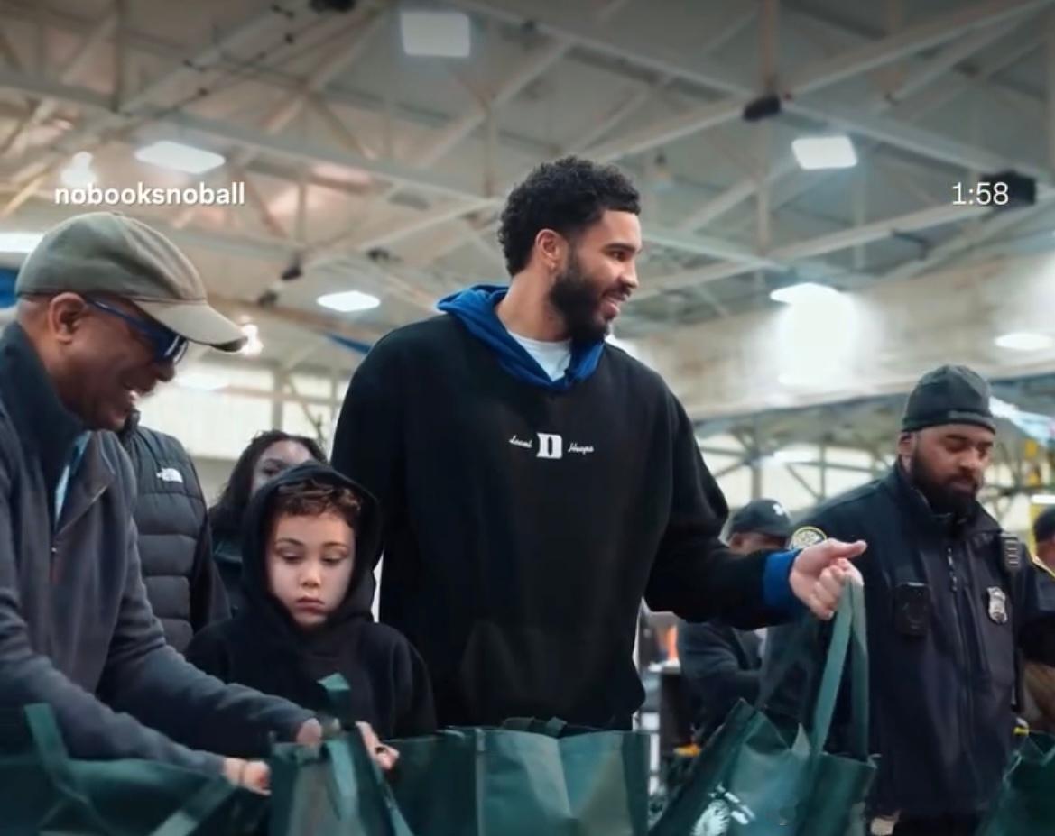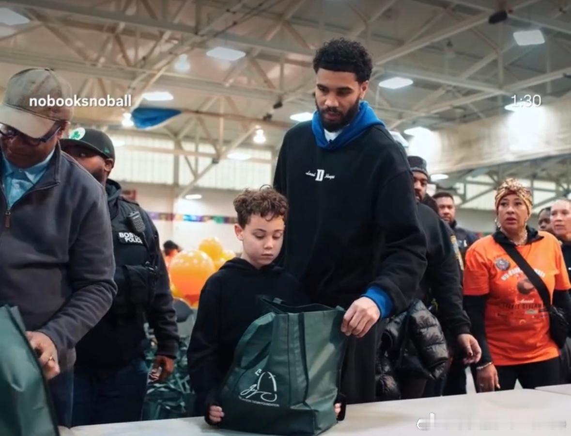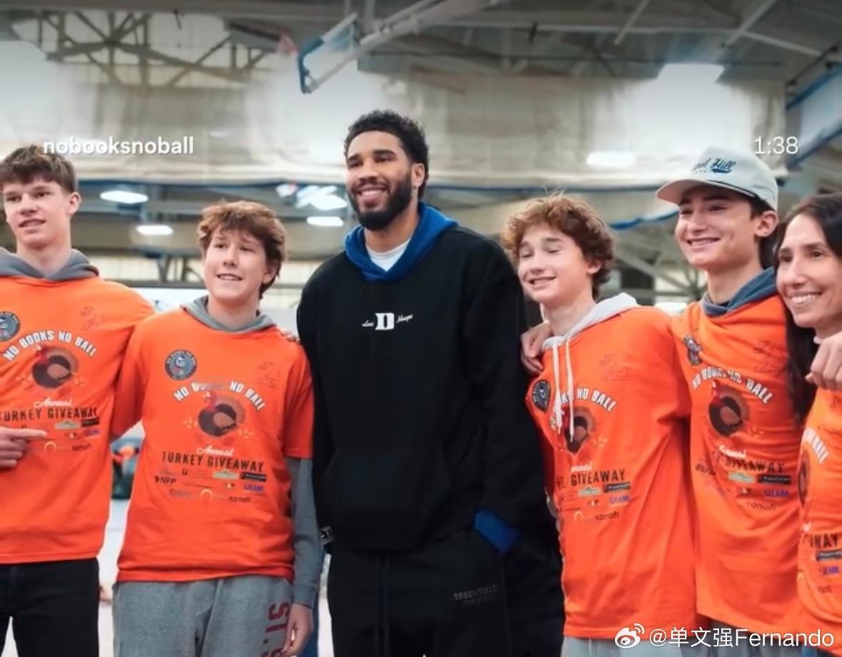 杰森·塔图姆!跟腱康复28周完成✅同时这周是感恩节,前几天JT带着Deuce回馈社区,参与了爱心活动,送吃的、和大家合影,Deuce脸宝也承担起责任了
