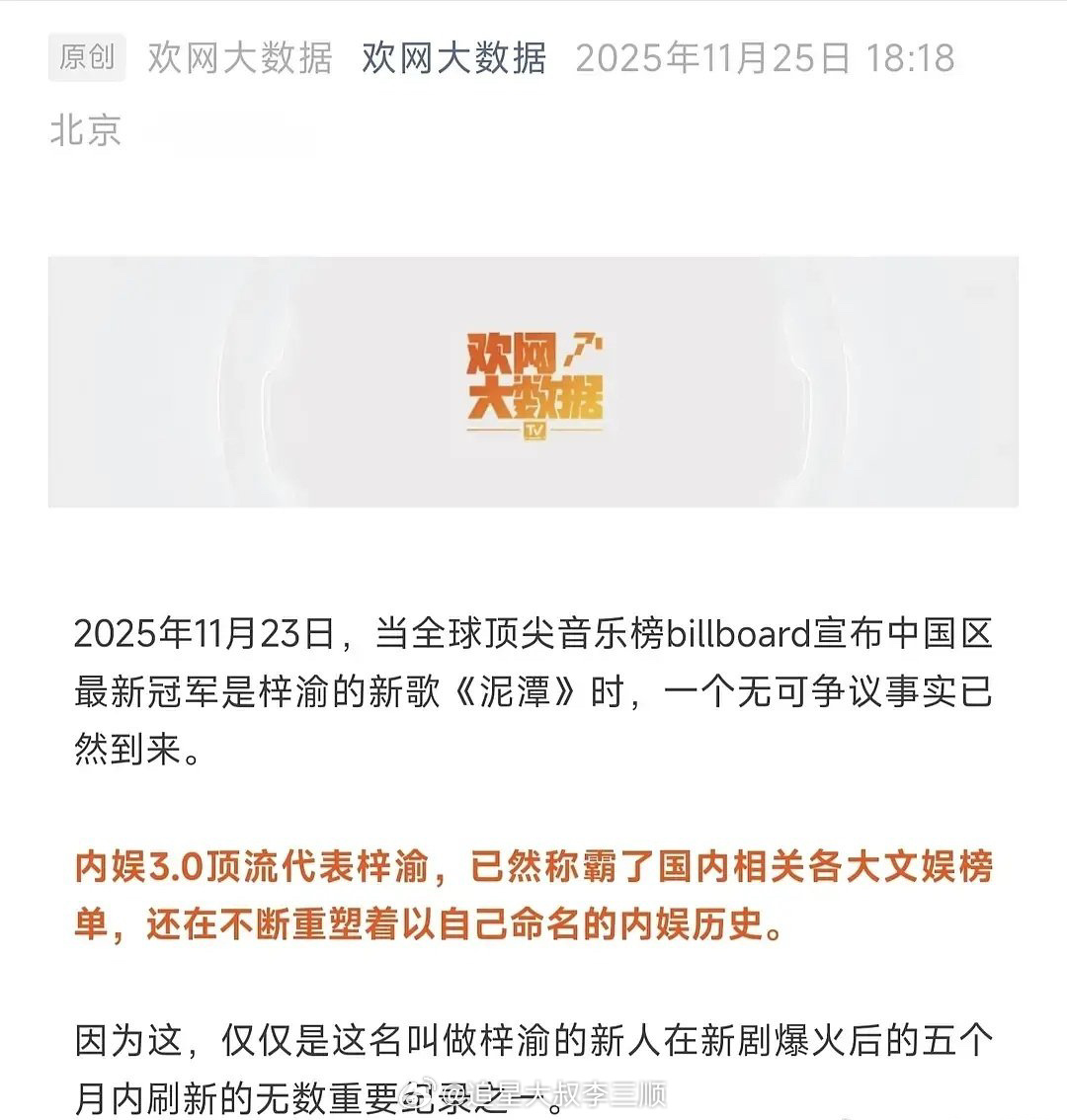 欢网发的内娱顶流三代变迁,给谁抬咖了?1.0:王俊凯 王源 易烊千玺 鹿晗 杨洋2.0:肖战 王一博 蔡徐坤 朱一龙内娱新顶:梓渝