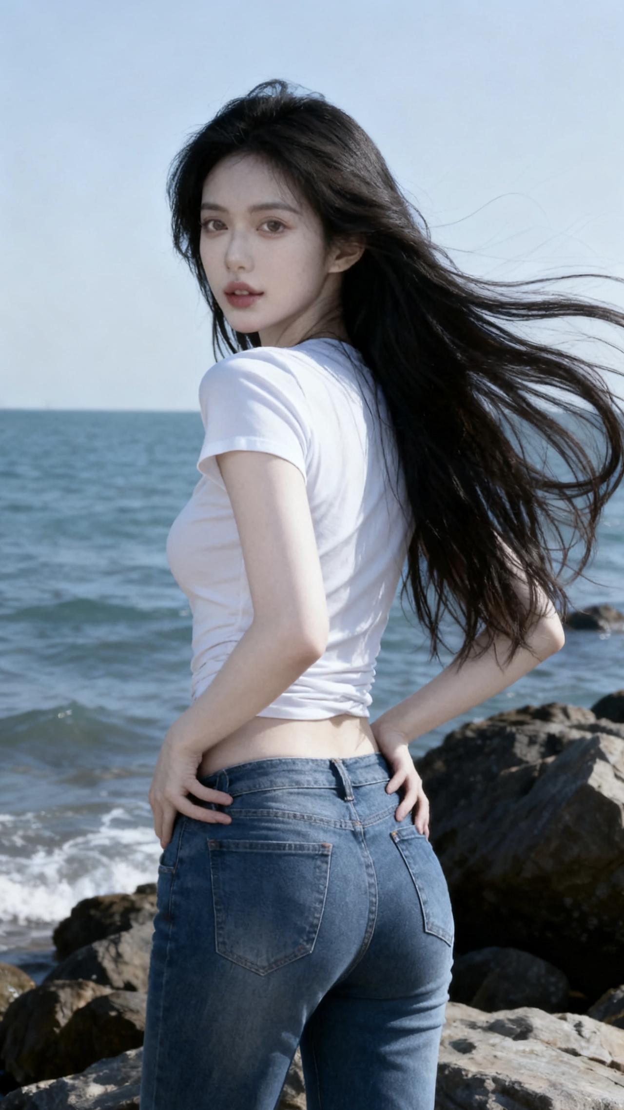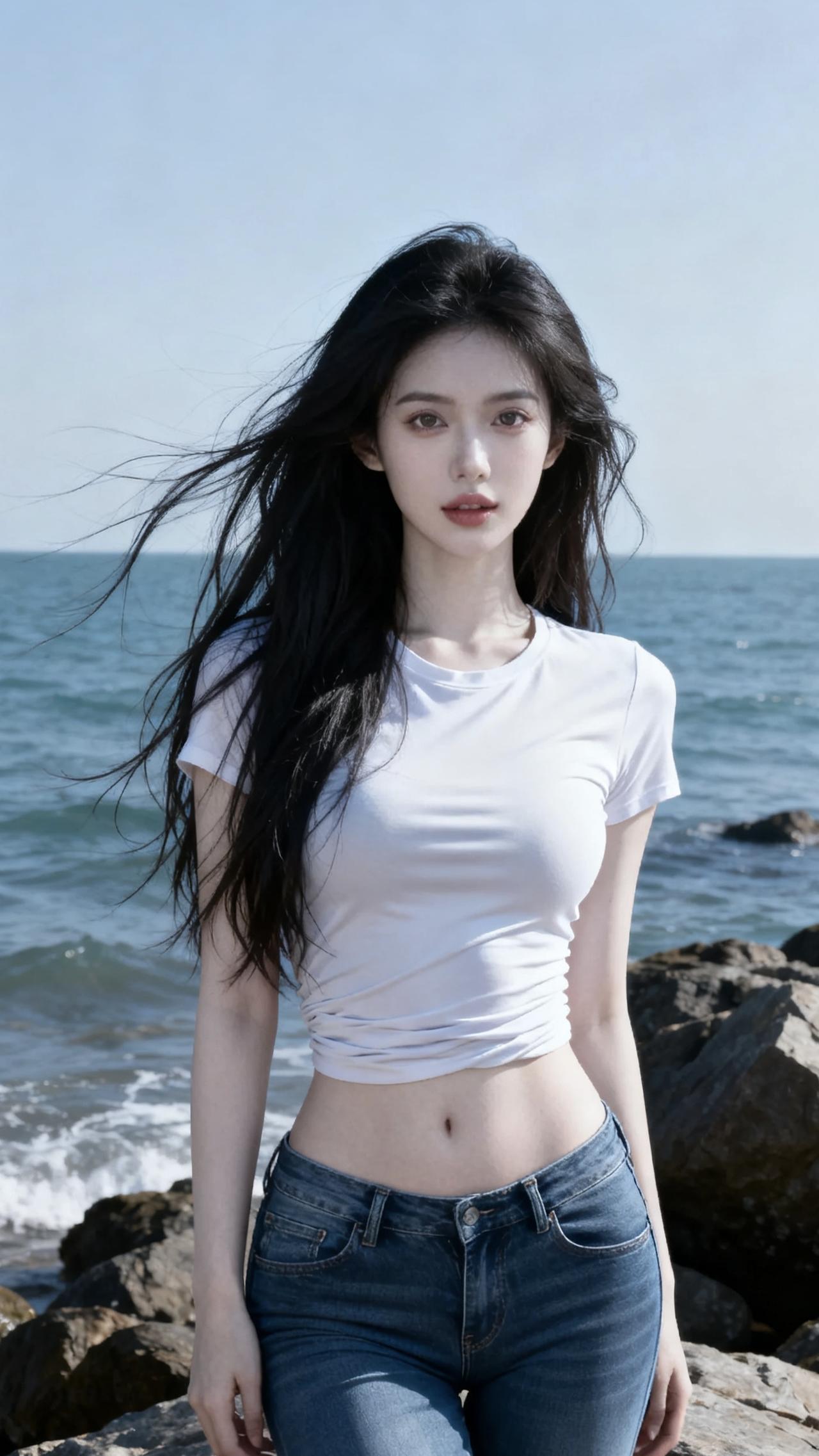 碧海潮生处,美人倚石立。