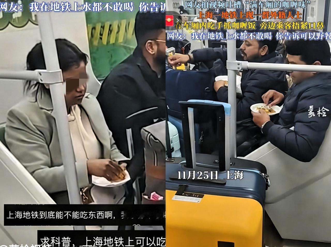 为啥没人管呢,真是无语到家了! 居然又有印度人在地铁上吃手抓饭! 明明上海地铁明文规定: 不许在车厢内进食,可他们偏不遵守。 这行为不仅违反规定,还弄得车厢又脏又不卫生。更让人无语的是,他们回头居然还造谣上海地铁不卫生。自己破坏规则在先,却倒打一耙,这操作实在迷惑。 每个地方都有各自的规则,到了别人的地盘,理应入乡随俗。咱们倡导文明出行,规则就是保障大家舒适出行环境的底线。要是都像这样无视规则,那公共秩序不就乱套了!