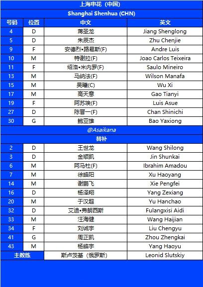 直播吧11月26日讯北京时间今晚20点15分,亚冠精英联赛东亚区第5轮,上海申花vs神户胜利船,赛前首发阵容公布。