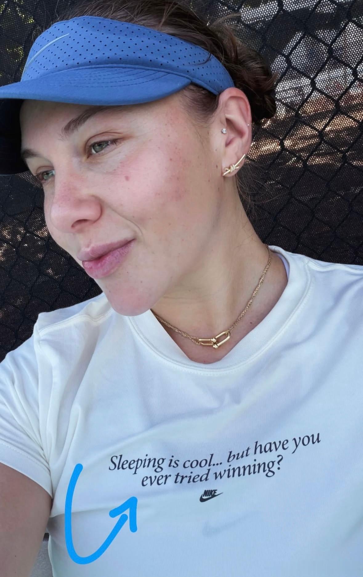 阿尼西莫娃回到网球场训练……划重点:衣服上的字“睡觉是好事……但你有没有试着去赢?”Amanda要花几天时间摆脱假期模式wta