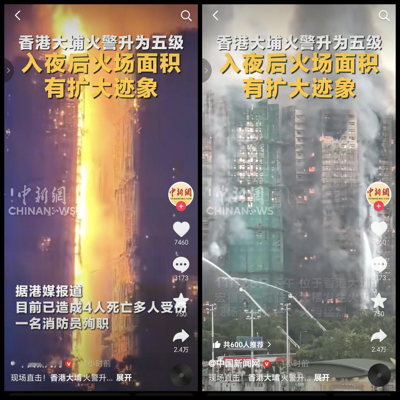 揪心! 香港大埔住宅大火升五级, 看得人捏把汗,希望都能平安! 11月26日下午,香港大埔宏福苑一栋住宅突然起火,火警直接飙到五级!到了晚上,火场还在扩大,浓烟火光看得人心里发紧。听说已经有4人没了,好多人受伤,还有个消防员牺牲了…消防们正拼命救呢,现场一堆救援车。真希望别再有人出事了,大家都平平安安的才好。