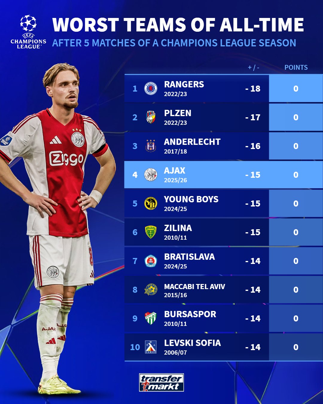 阿贾克斯(25/26赛季):-15,0分