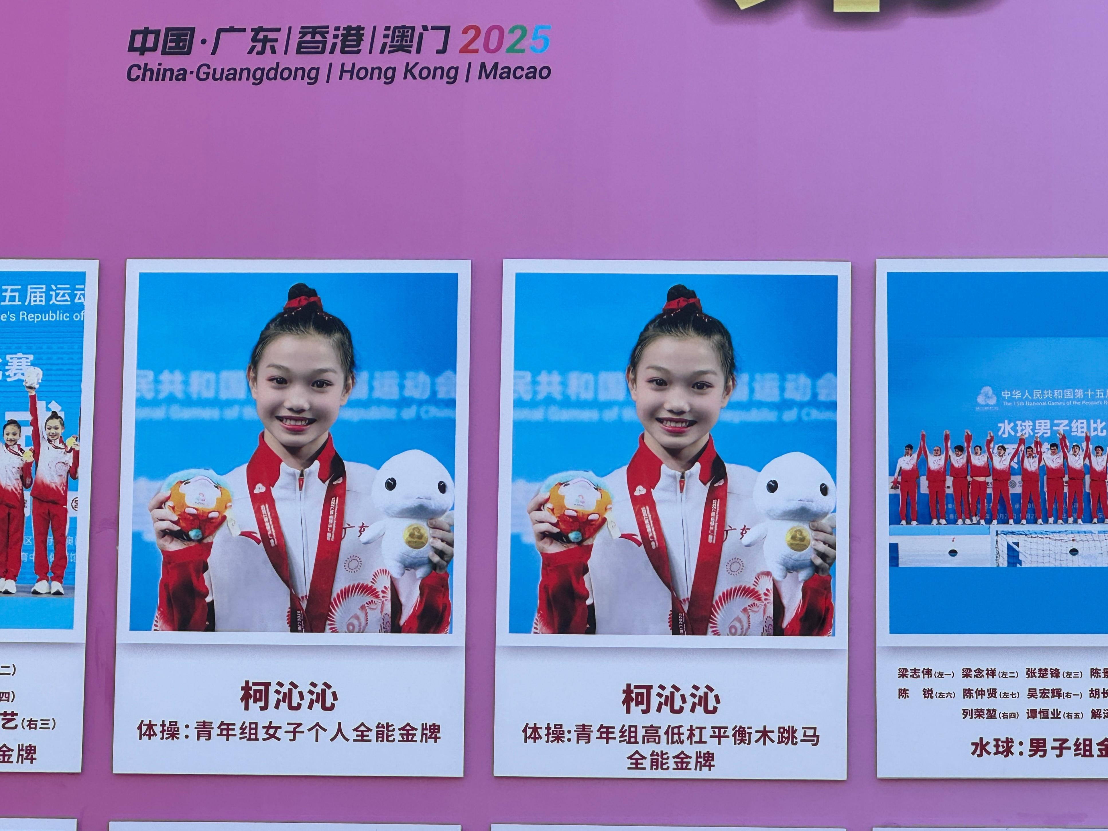 柯沁沁广东体育馆全运会冠军墙,给沁沁拍的领奖照上墙啦全运会第十五届全运会