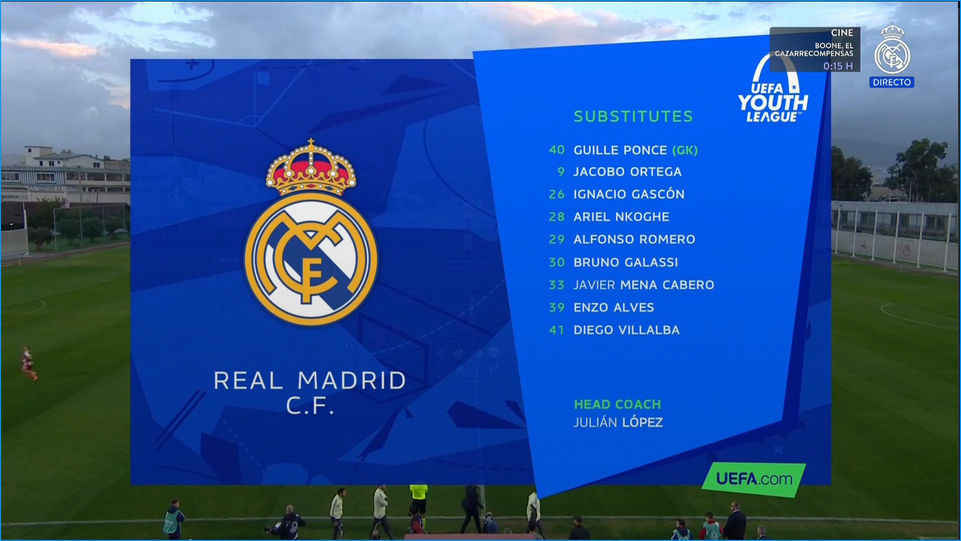 U19青年欧冠,皇马对阵奥林匹亚科斯 恩佐入选大名单,替补待命。