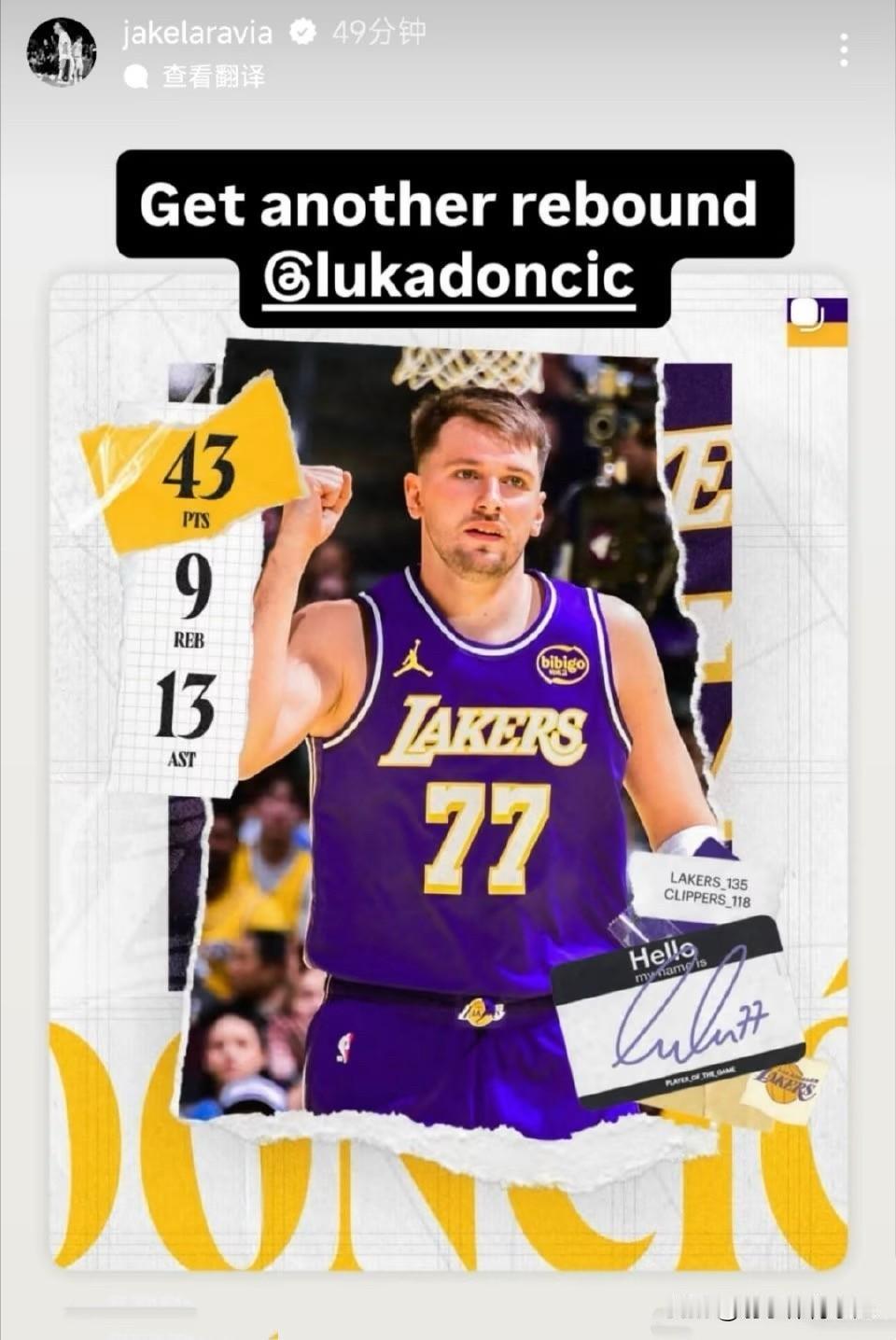 洛城德比,东契奇发挥神勇,砍下全场最高的43分9篮板13助攻的准三双数据。 赛后,队友拉拉维亚社媒发推,调侃东契奇为何不多抢一个篮板凑成三双。 东契奇回复道:你Y话太密。 东契奇原本有机会完成三双,最后时刻,詹姆斯硬生生从他头上摘走2个篮板。 实在是不好意思,东契奇最后时刻遇到的是比他更看重、更想刷数据,要抢风头,不懂成人之美的乐邦-詹士。[我想静静][我想静静]