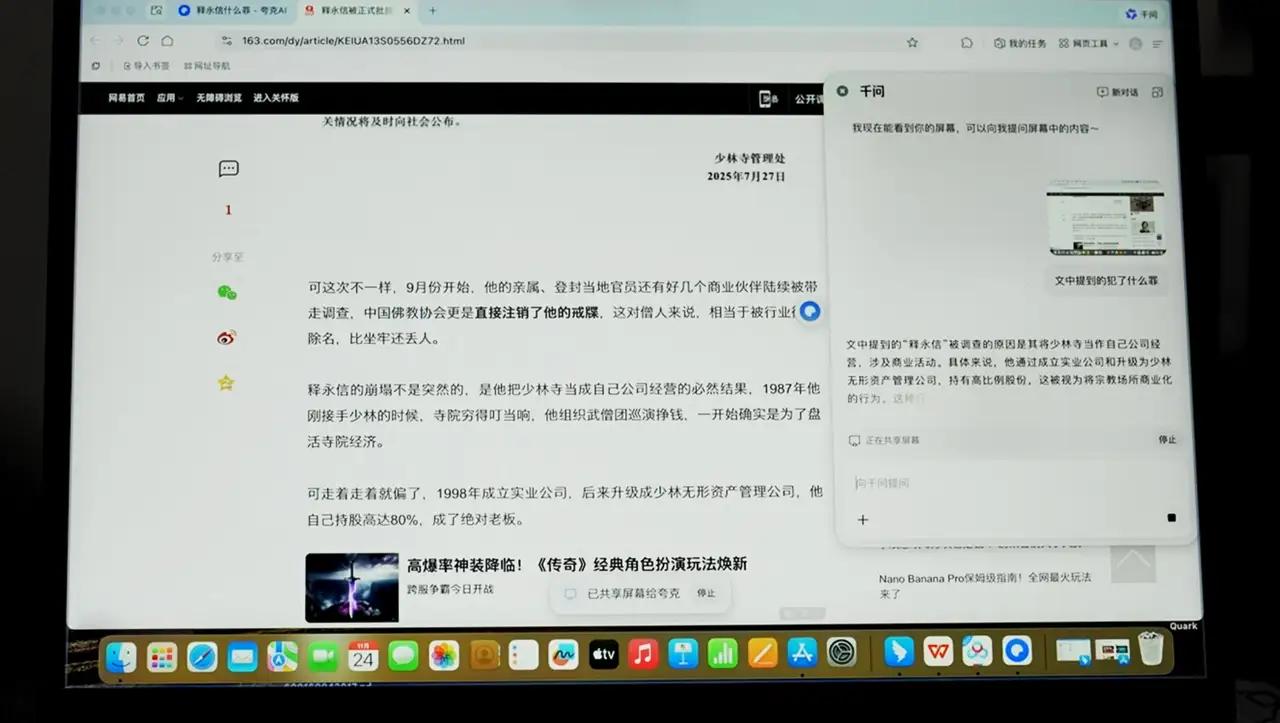人工智能独领新时代“办公效率将要提升好几倍”!最近因为夸克AI浏览器,网上都快闹翻天了! 以前的浏览器虽然也有AI功能,但是大多都和谷歌icon一样,只是将AI作为一个附属品,简单的植入在浏览器中,就像是一个小插件icon,咱们在浏览过程中,想要调用AI,得各种跳转。 但是现在夸克AI浏览器不同,它是深度融合千问的,不是简单把AI放进浏览器里,而是直接让浏览器成为了AI。 最近,夸克AI浏览器与阿里千问的深度融合,引发了网络上的热烈讨论,许多人对此表示兴奋,认为办公效率将得到显著提升。随着科技的不断进步,AI在我们的日常生活和工作中发挥着越来越重要的作用,而夸克AI浏览器的这一创新,为用户提供了前所未有的体验。 过去的浏览器虽然具备AI功能,但往往只是作为附属品。以谷歌浏览器为例,用户在使用过程中需要多次跳转,调用AI的辅助功能时总是显得繁琐。在这样的操作中,用户不仅要分心,还可能影响到工作效率。然而,夸克AI浏览器的这一次革命性变化,让人们对AI的应用有了全新的理解和体验。 通过与千问的深度融合,夸克AI浏览器在用户界面和功能设计上做出了巨大的改善。用户所需的AI相关功能现在几乎可以直接在浏览器中完成,无需繁琐的跳转和插件安装。这样的设计不仅简化了操作流程,还让用户能够更加专注于实际的工作内容,真正实现了“将浏览器变为AI”的理念。 许多用户反映,自从使用夸克AI浏览器后,搜索信息的速度大大加快,日常办公的各项任务也变得更加高效。无论是文档编辑、数据分析,还是在线会议,AI都能实时提供相关信息和建议,帮助用户更轻松地完成各种工作。这种高效的工作方式,极大提升了人们的工作效率,很多人甚至表示,办公效率提升了数倍! 这种转变不仅是技术的进步,也是使用体验的革新。AI不再是一个单独存在的工具,而是与日常工作的每一个细节深度结合,让科技与人类工作生活的边界变得模糊。这种智能助理的设定,给用户带来了前所未有的便捷,进一步缩短了信息获取和处理的时间。 总的来说,夸克AI浏览器与千问的深度融合,标志着浏览器技术的一次重要突破,也为未来的智能办公提供了全新的解决方案。随着这类技术的不断发展,我们有理由相信,未来的工作方式将会更加高效和轻松。你是否也体验过这种新的技术?有没有对你的工作产生积极的影响呢?欢迎在评论区分享你的使用体验和看法!夸克AI工具 职场ai工具