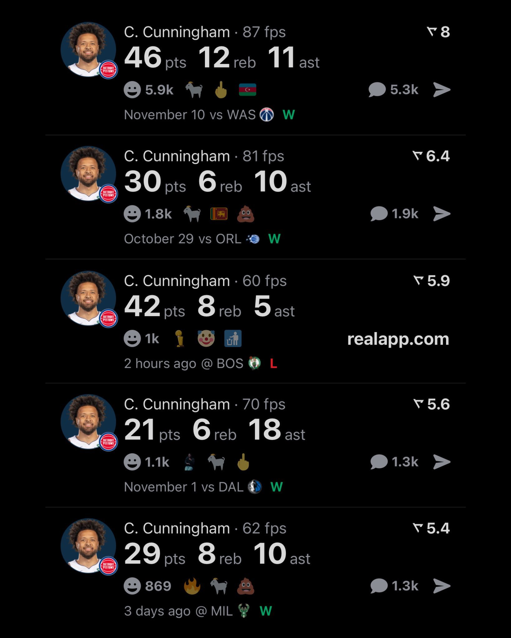 ▲坎宁安成为5000+分&1500助攻第5快的球员