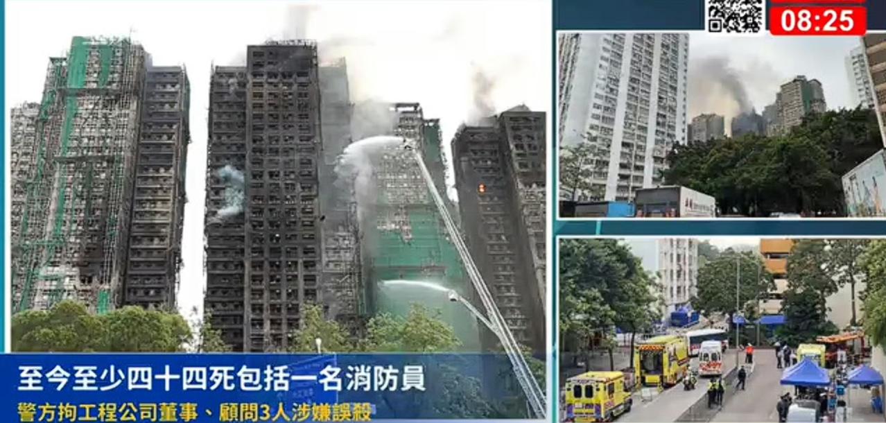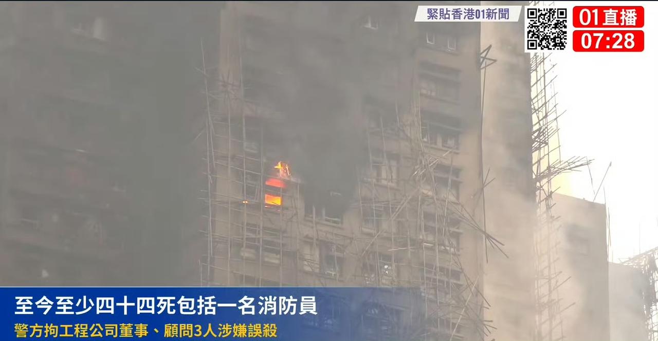 一晚上了,香港大埔的火还没彻底扑灭,还有三座大厦的火势还未得到控制,太惨了… 至少遇难44人,还有失联的没计算在内。