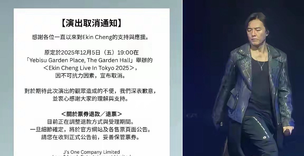 郑伊健日本演唱会取消了!原因是“不可抗力因素”其实就是航班停了,他粉丝过不去。郑伊健一直住日本,航班停了,演唱会为啥不继续开?因他的歌小日子不听他只能薅华人的钱,而且还要把国人弄去到日本去薅,就那么简单。
