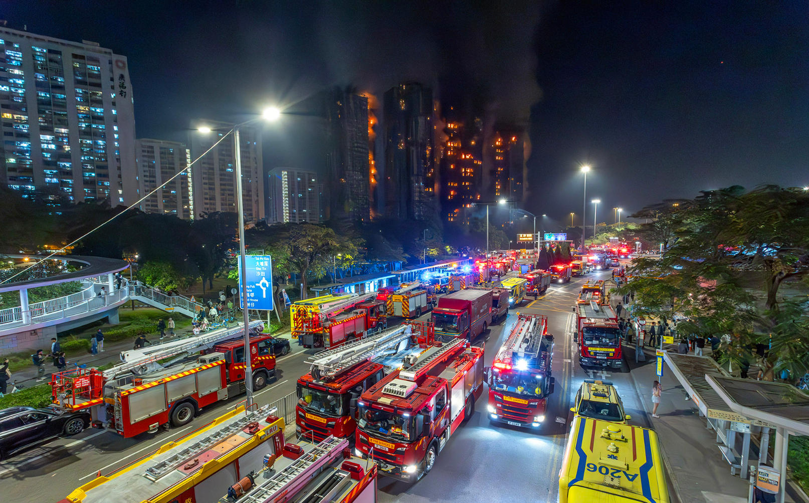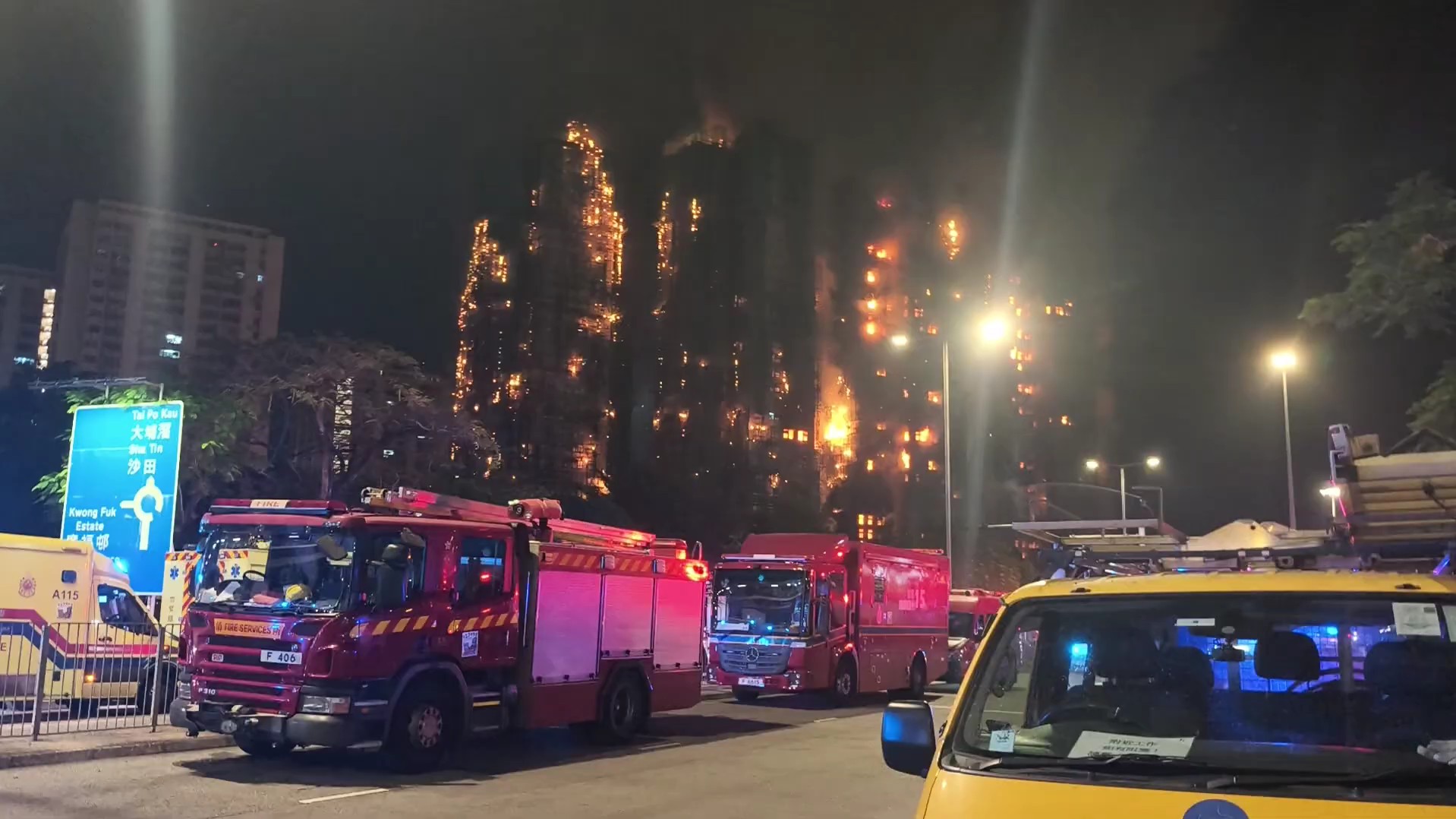 8、下午3时34分,当局将火警提升为四级,6时22分提升为五级。在香港,五级是第二高级别的火警,意味着火势完全失去控制而且迅速蔓延,以及有大量浓烟,高热,受伤人数增加。