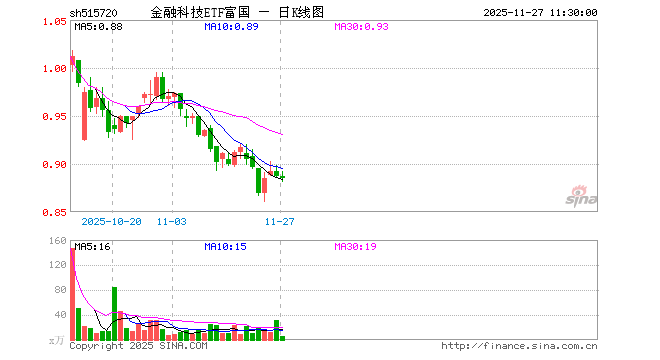 金融科技ETF富国(515720)业绩比较基准为中证金融科技主题指数收益率,管理人为富国基金管理有限公司,基金经理为殷钦怡,成立(2025-09-22)以来回报为-11.32%,近一个月回报为-7.70%。