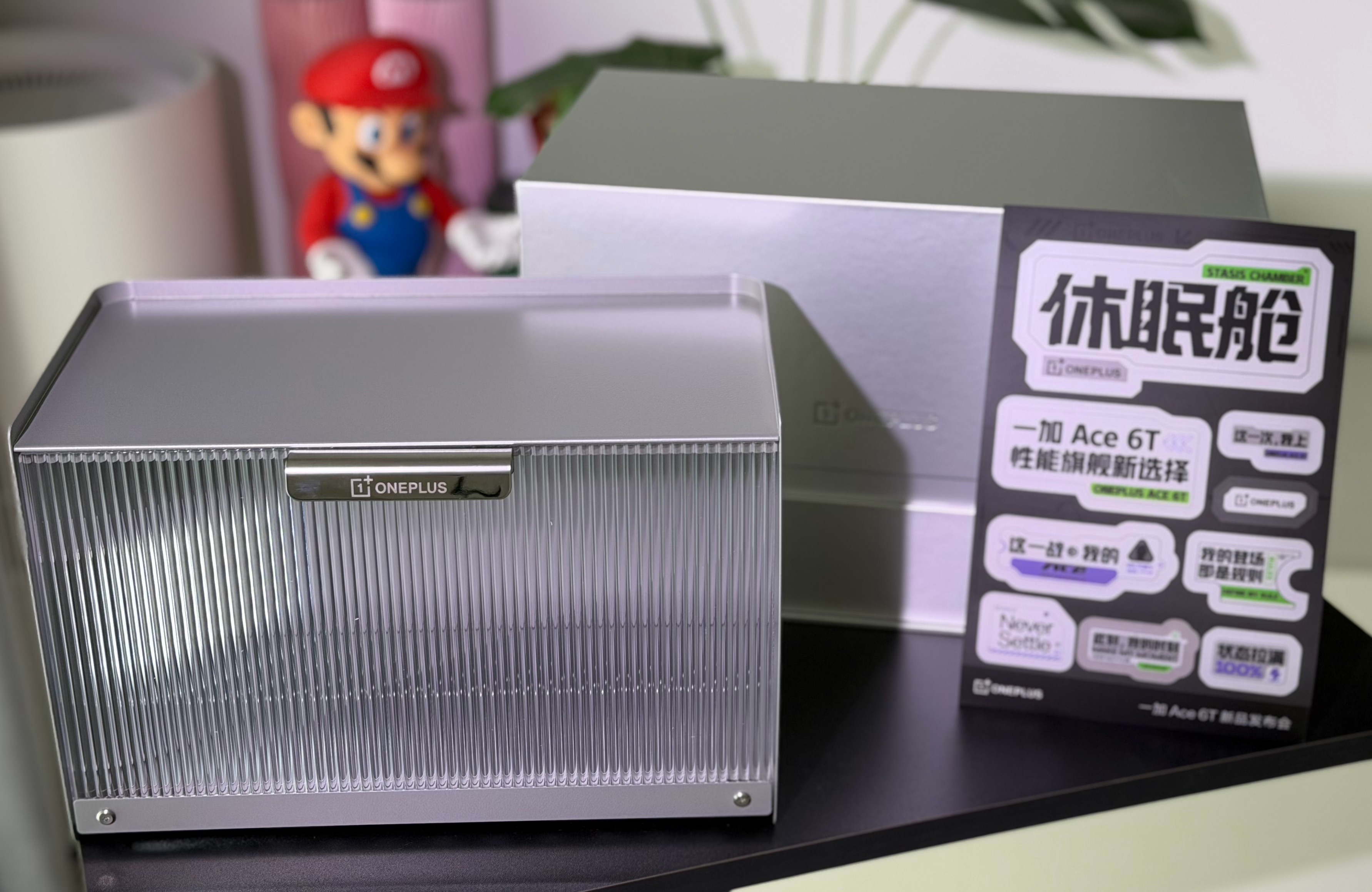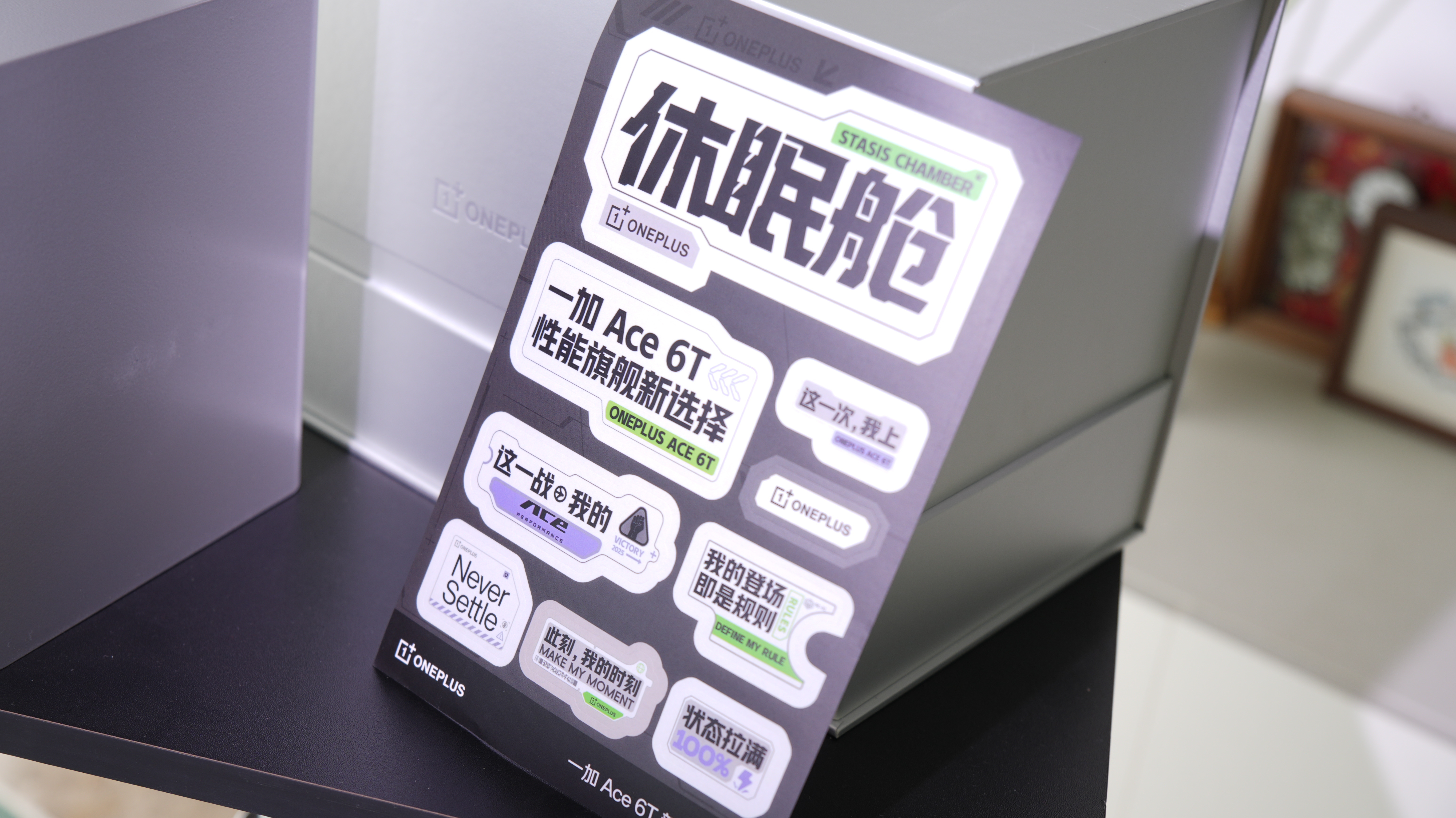一加Ace6T邀请函开箱!这个“休眠舱”设计也太酷了吧!银灰色金属机身搭配格栅散热,磁吸感应灯一亮科技感拉满,里面还能收纳旧手机,好一个“旧机归档,新机登场”哇,哈哈哈😄~贴纸文案“我的登场即是规则”更是霸气侧漏,看来这次性能要炸!12月3日19:00发布会,性能旗舰新选择,蹲一波!
