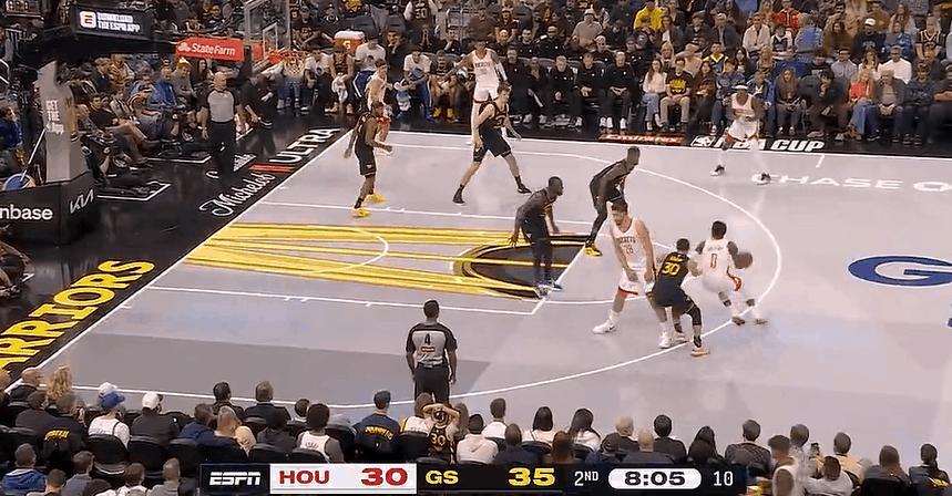 活久见!库里居然完成追身大帽! 在今天NBA季中锦标赛勇士对阵火箭的第二节比赛中,霍勒迪突破后欲完成抛投得分,库里直接从身后完成追身大帽! 这年头能被库里完成追身大帽的球员可不多!霍乐迪这球多少有些托大了!