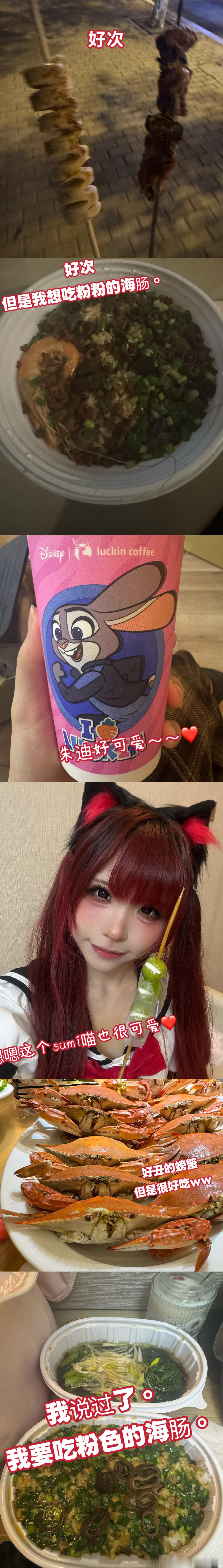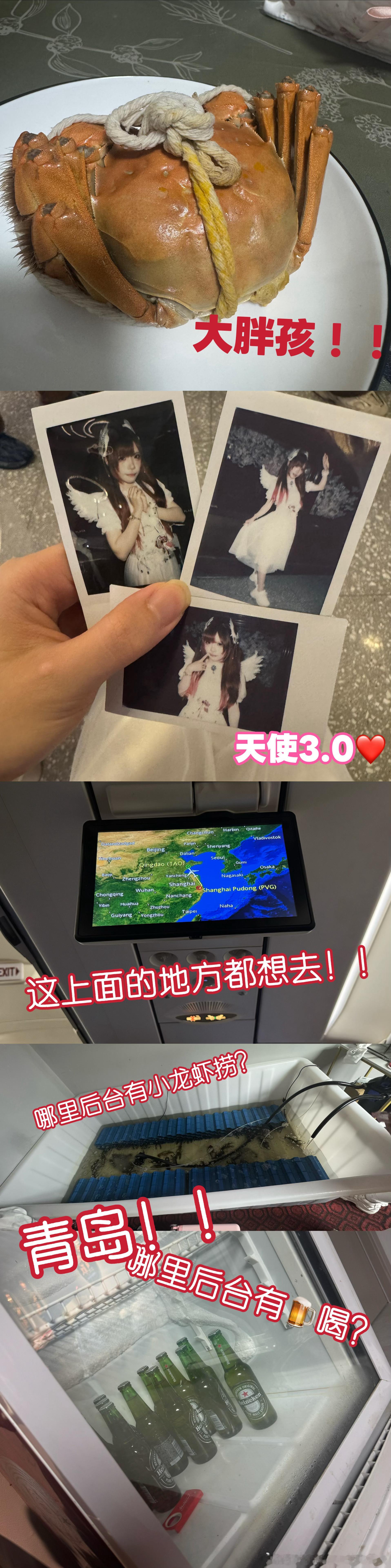 时光倒转魔法使用——☆🔮!!1️⃣🦀上周四来了白白家吃她亲自给我蒸的大螃蟹!!美味!!图六但我还得再学习怎么剥蟹,我只会撕咬蟹腿试图吃到里面为数不多的肉ww(野生小猫ww)(白白家冰箱上的好货真是太多了w)周五穿上了新买的白色长裙,更新了天使3.0~是专属于冬天的温柔感(●'◡'●)图四说起来最近开始喜欢上穿长裙了~以前因为被说过腿短不适合,所以一直会默默地收藏喜欢的漂亮长裙但避之不穿,但大概是季节的感性,还有粉丝给的肯定,让我又穿上了一件自己喜欢的衣服,穿上之后很暖和,大概是因为有比聚酯纤维更温暖的东西吧~如果我也可以温暖你就好了SP唱了sleeping dirty!!而且是和我一直很喜欢的很帅的唱歌很好的xox们!!图一图二图三说起来这个节目是两个月前定的,当时一开始是自然而然的要了我们四个人一起在ギミレパ出现,但过了一会儿收到了小枫说让我和她换的消息!她说“我觉得你更适合那首歌因为你实力很好”当时我的眼泪一下就没忍住…特别谢谢小枫给我的这次机会!!能和洛可松月竹子kasane四位女王大人一起站在台上唱歌真的特别特别幸福!!!四位都是我看舞台的时候就特别仰慕的偶像,很喜欢!希望以后还可以再合作!!我会再幸福地升天~~(〃ω〃)(说起这首歌,我的学习视频是洛可sp视频,我有幸袭名大狸的唱位,并且偷偷继承了她的ending pose2333)(后来看视频发现竹子kasane也做了hhhhh只剩松月不知所措www)(在后台鼓起勇气和一直喜欢的松月和饼饼搭话了,两个人都特别温柔!!好幸福!ww)(穗在后台还喂我吃蛋糕了~生日快乐!(〃'▽'〃))「覚めることない夢だけ見て 永远沉溺于永不苏醒的梦境 明日などない世界に光を 在永无明日的世界追寻光芒 叶うなら 君と溶け合い 若能实现 愿与你相融一体」🎶演完了依旧会戴耳机听的一首歌。回家洗漱完三点睡到六点起床就开启了特种喵的旅程!!尝试了上次穿芭蕾课的时候突发奇想的妆造,想露出现在每天都在努力锻炼的肩膀ww实际好像也很不错!!开心⸝⸝ ᷇࿀ ᷆⸝⸝第一次无特典的舞台,但看到了好多熟悉面孔!大家来看我的舞台好开心,可惜要等下次再聊天啦~保持公主的优雅地演完了这场,下了台马不停蹄地拉着行李箱就跑地铁到场!在便利店买了最爱喝的青柑普洱乖乖等登机~是人生中第一次去青岛!肥肠期待!!(✧◡✧)在飞机上还吃了一块没有鸡蛋的吐司!真的超级美味好暖心好喜欢(〃ω〃)然后开始昏睡💤……醒来吃了好吃的✈️餐!又昏睡💤……晚上六点抵达青岛!!在场地门口看到了水果糖葫芦! 我坠喜欢橙子和青提!咬开之后的汁水和糖块融合的口感好清爽好好吃~❤️这就是青岛的后台吗!竟然还有小龙虾和啤酒2333好想捞一只走www图六见到了两个月不见的本页宝宝!!在上台前看了ekiru的舞台,能看到当时在北京被我的舞台吸引的乖宝宝如今也在台上闪闪发光真的很开心,跳得很好很干脆唱得也很有感觉!sumi认证之!!希望以后可以多见面!!图四然后就是首次的青岛舞台!陌生的地方依然有熟悉的人陪在身边很安心~很少有机会能在这样小小的驻场舞台上演出,虽然被架子鼓袭如击ww但是感觉0距离的舞台能更感受到大家对演出的情绪变化,感情好像更好地传递到了。这样的感觉,在看NNNK的舞台更浓烈地感受到了。在和大狸交谈完后更真切感受到对舞台的热爱和氛围是怎样都演不出来的,每个人都充满力量和信念地去表现曲子的意义,看得我总会忍不住热泪盈眶,真好啊,我好喜欢这样的团,还有这样的团演绎出来的舞台。然后凌晨下了班购入俩串烧烤回之w图七第二天也早早八点半起床!点上了我一直期待的海肠捞饭,还加了一只虾ww虽然饭糯糯的很好吃但是为什么这个海肠是黑色的不脆…明天我再点一家!图七今天也cos了sumi喵~在台上释放了所有的元气好开心好满足!!忘记控制一切表情机能,将身心交给舞台的感觉真的特别幸福。想回到了刚出道时什么都不懂,只会为了舞台一股脑往前冲的心境。看着台下的人会被我的舞台感染到笑起来的样子,真的很可爱,好幸福。(然后下台发现猫耳歪了辫子假睫毛都掉了)(不行主包你还是得控制点hhhh)今天也看了NNNK的舞台,和昨天燃爆全场的祭典歌单不同的是,今天是略带伤感又充满希望的抒情歌单。小废在MC时的发言,能感觉到她是一个心思特别细腻又很温柔的人,大家的感情真的好好。(而且口条好好,好想拥有这样的一张嘴!!w)(然后俩天都没切上小废呜呜呜她好火,好欣慰)(复杂)下班也买了一串冰糖葫芦!!还和十秒打了短暂的幸福电话~~晚上吃了一桌子的海鲜大餐!!好久没吃了真的好幸福🥰图七青岛海鲜配青岛啤酒是这个👍🏻sumi喵的日常 被迫分段发了这是幸福的1️⃣!!