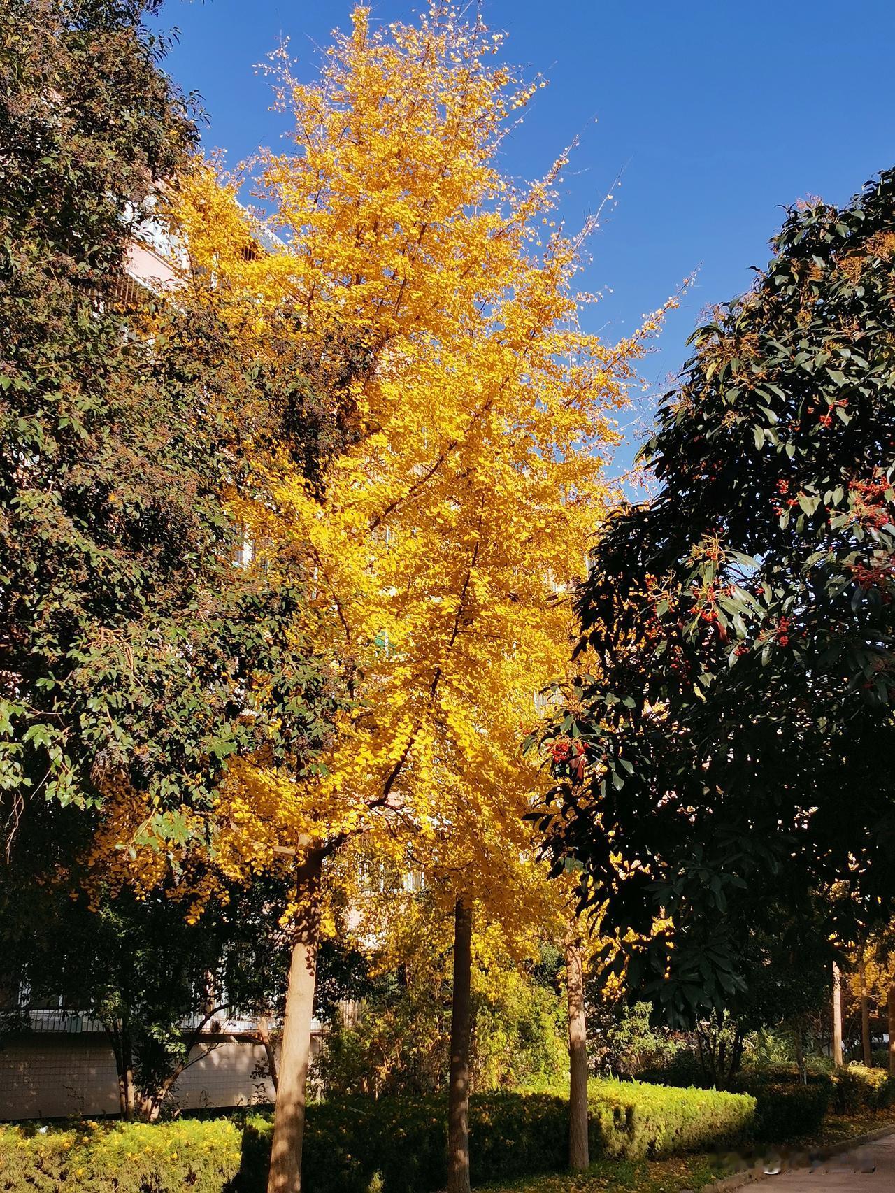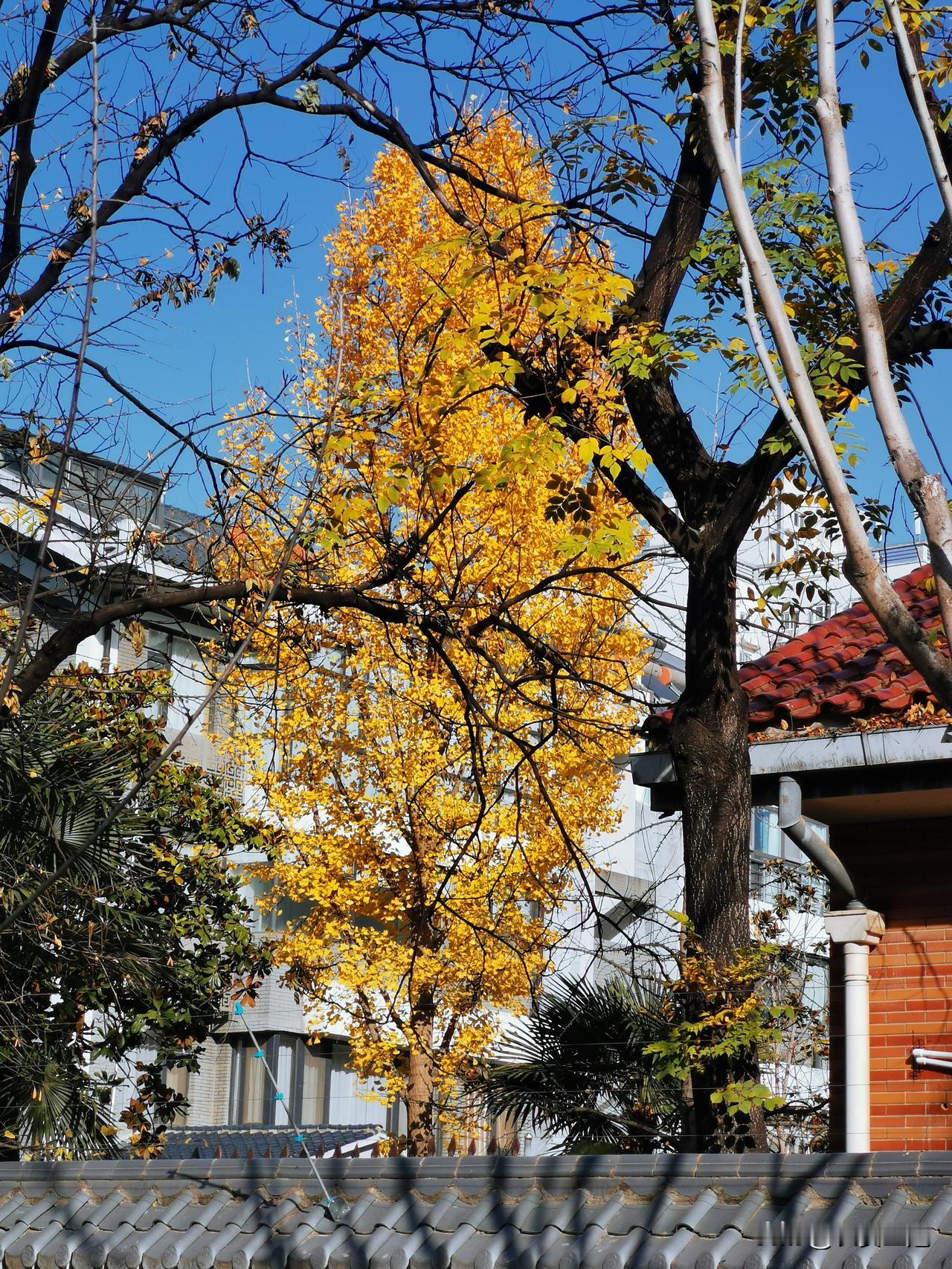 院子里的黄金叶,银杏叶黄了,赶紧留个念[呲牙][笑哭]