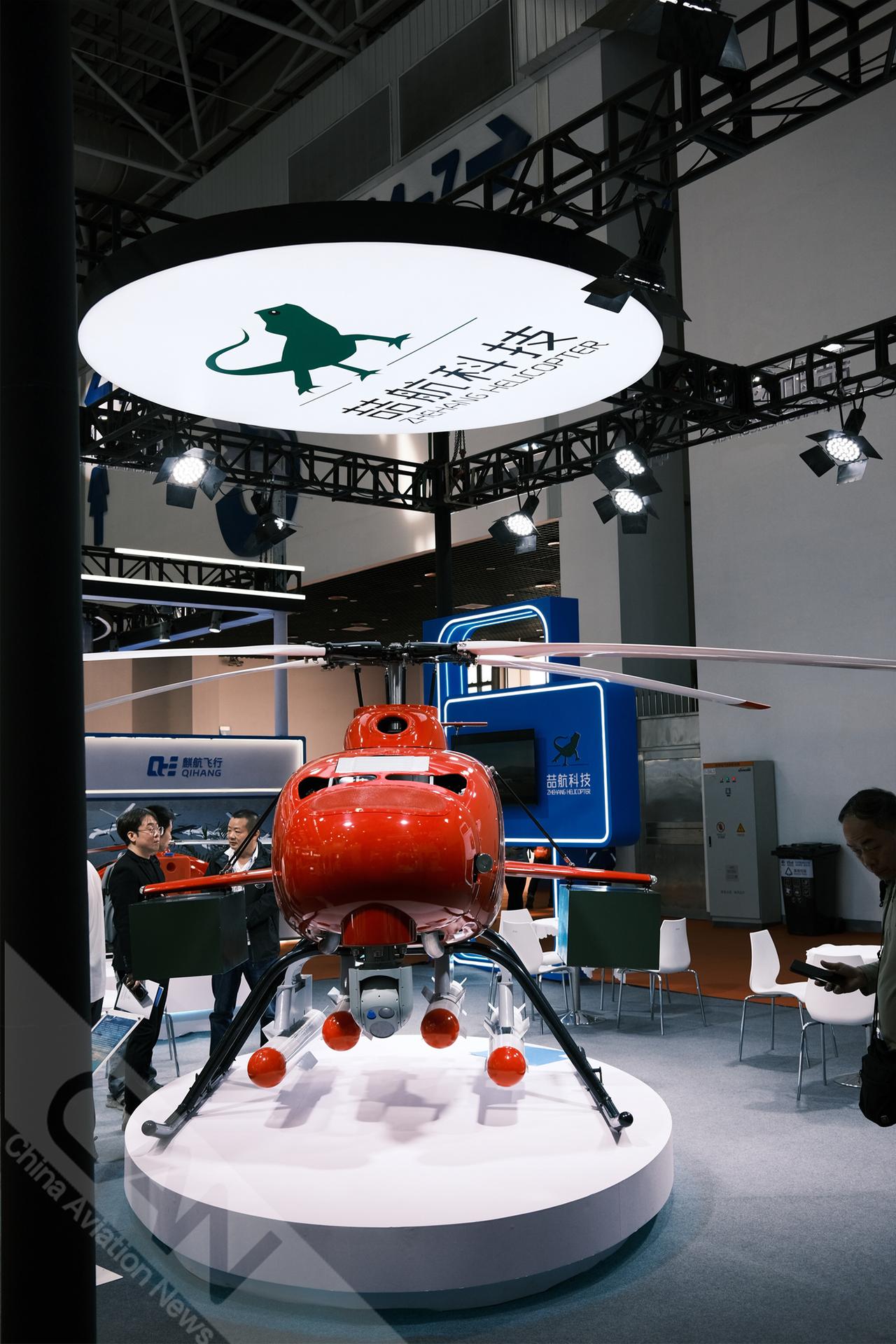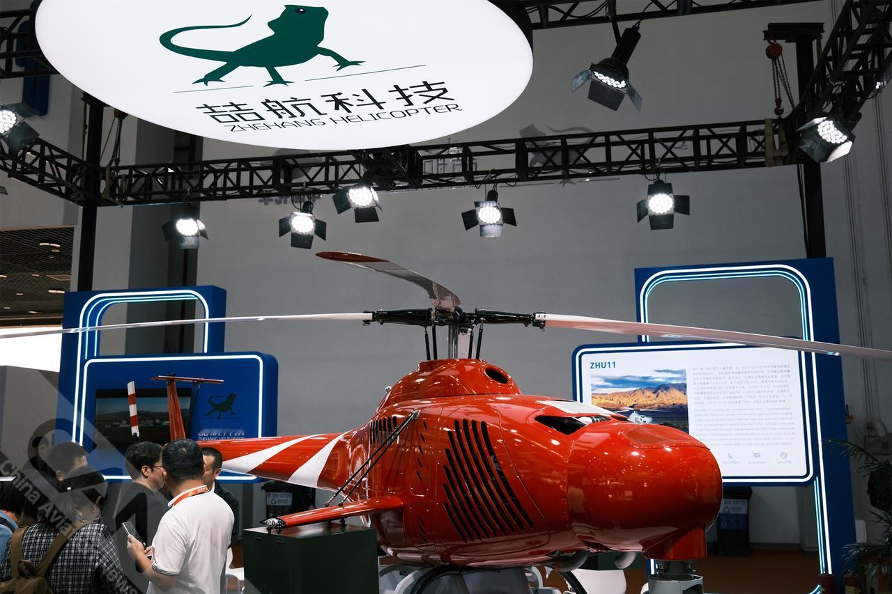 2025亚洲通航展开幕,喆航科技重点展示ZHU11大型无人直升机,该机型最大载重量可达400公斤,最大续航时长6小时,最高升限为4500米,可在高原高寒地区执行多种复杂任务。(摄影:高新宇)