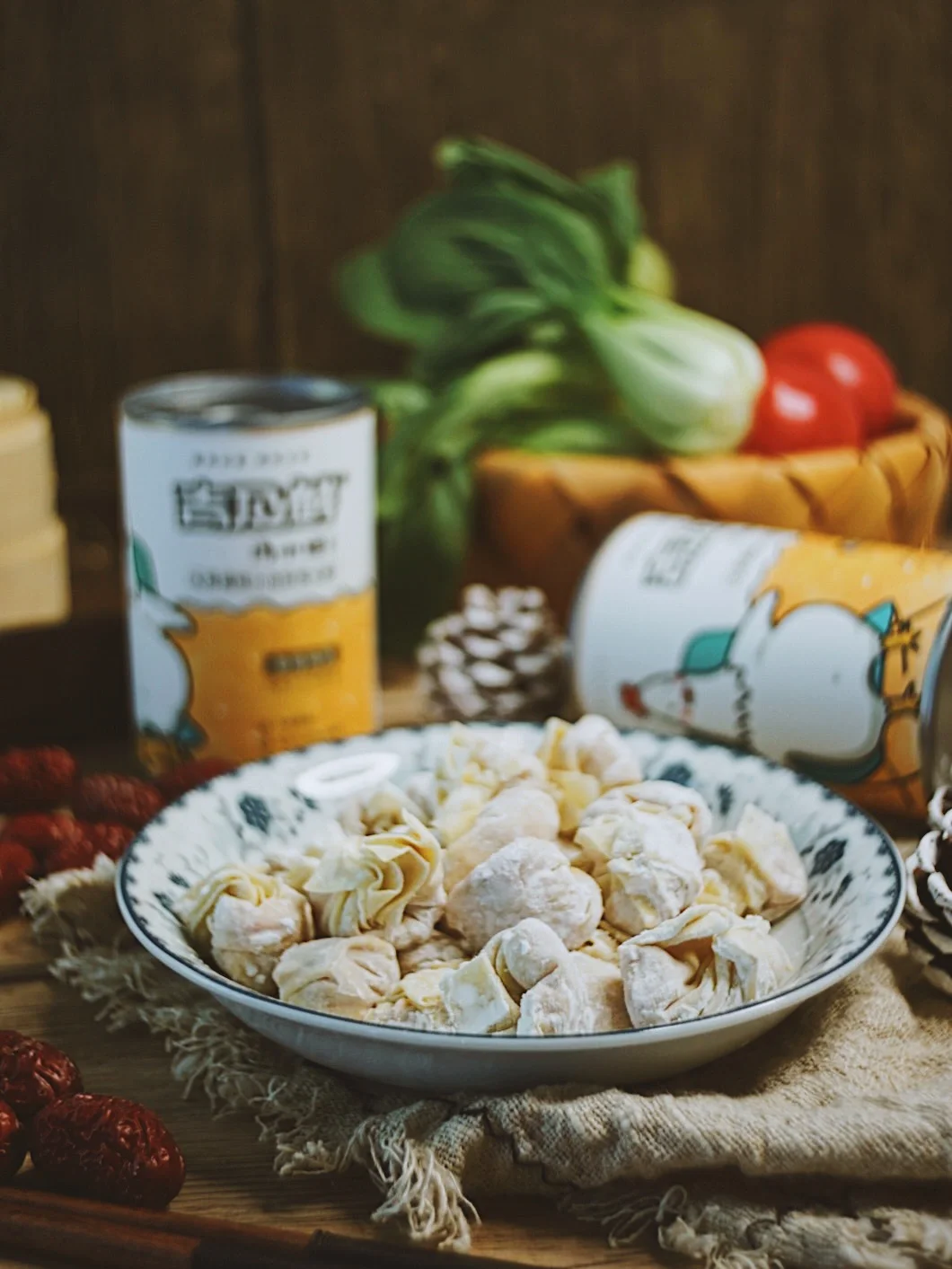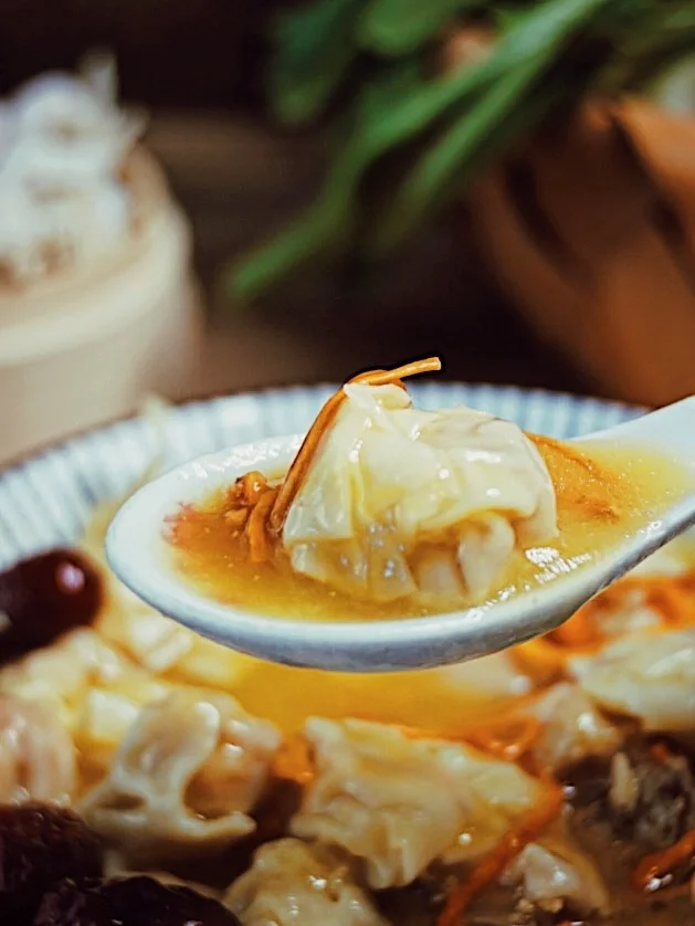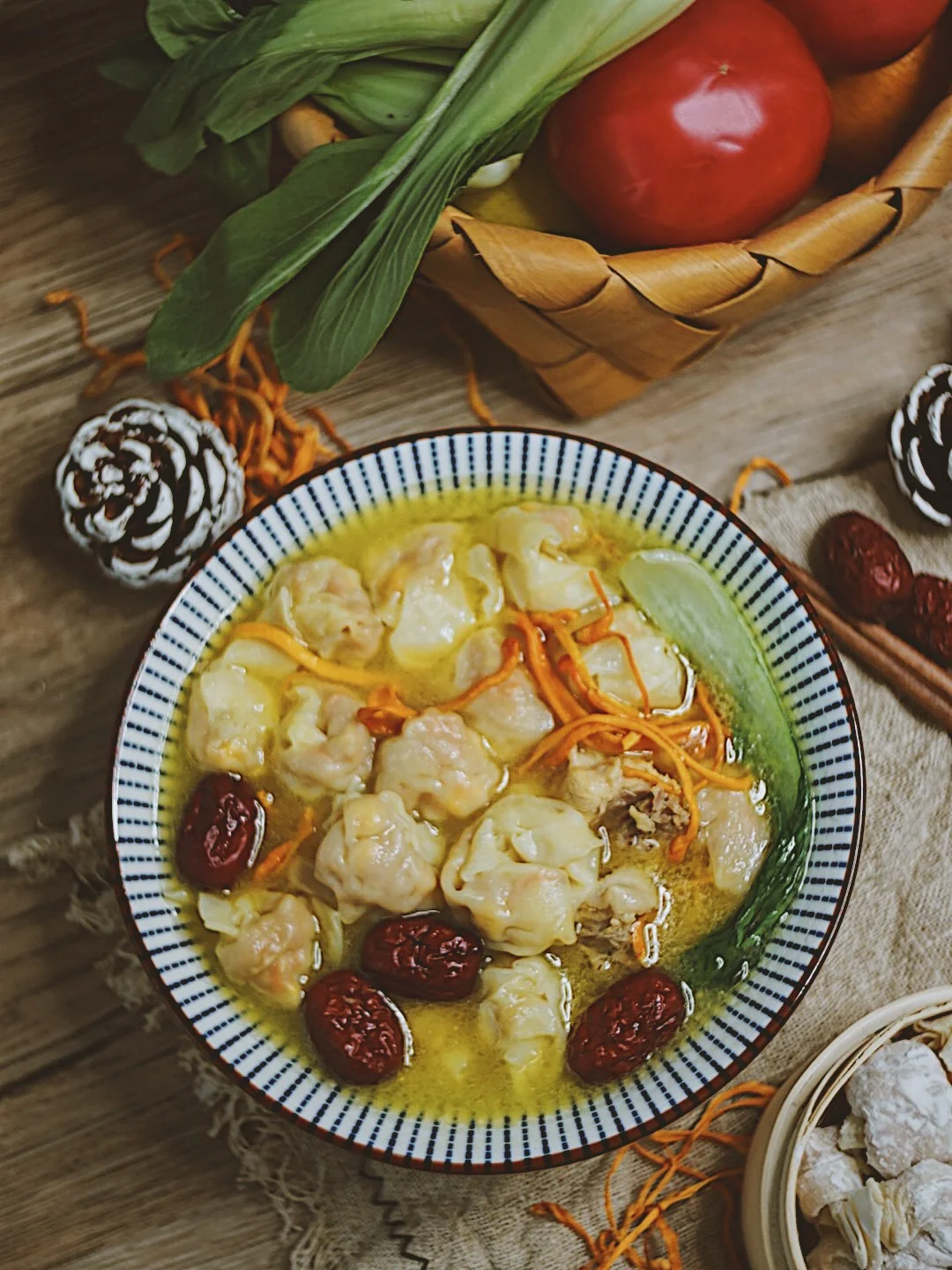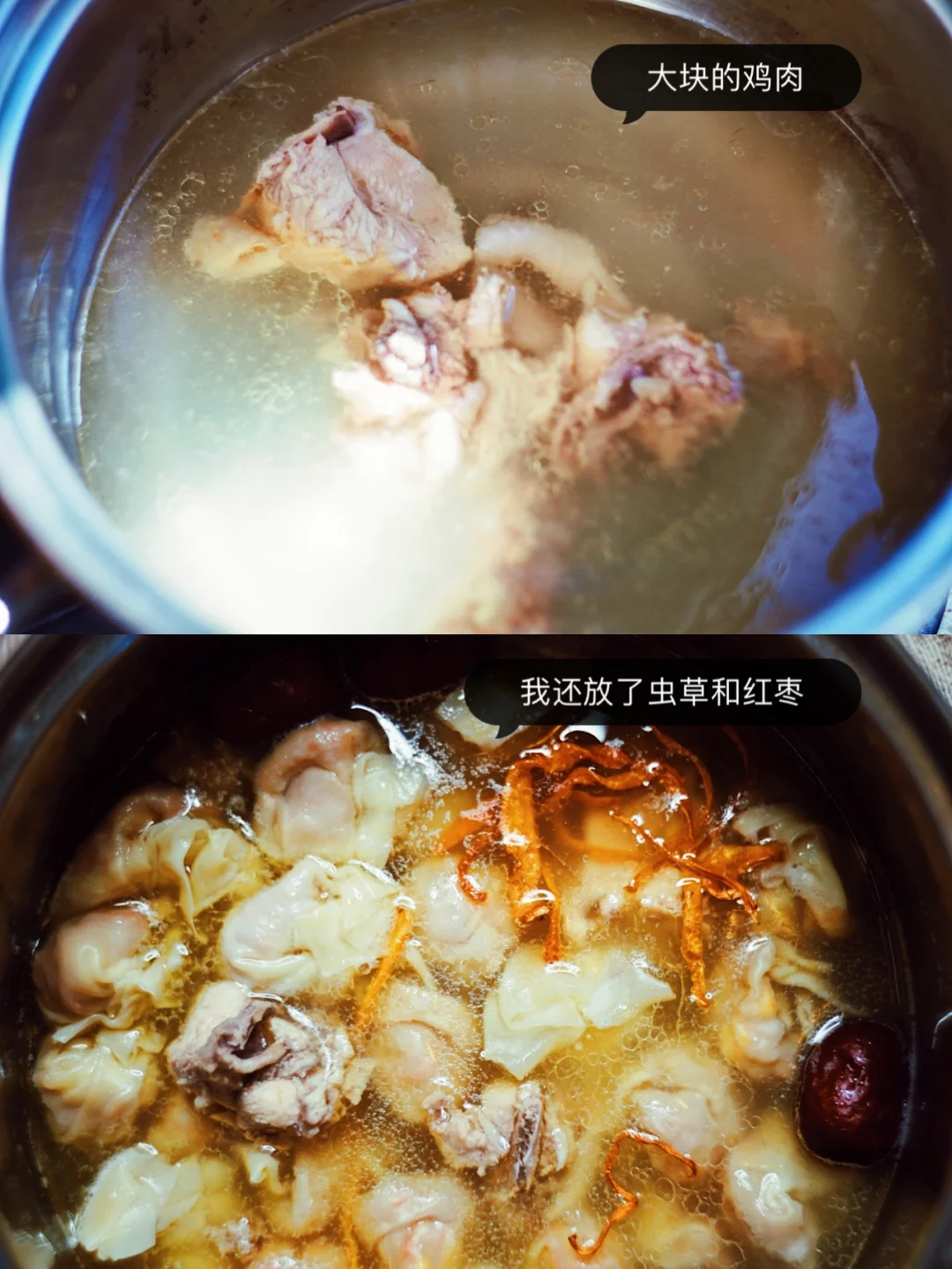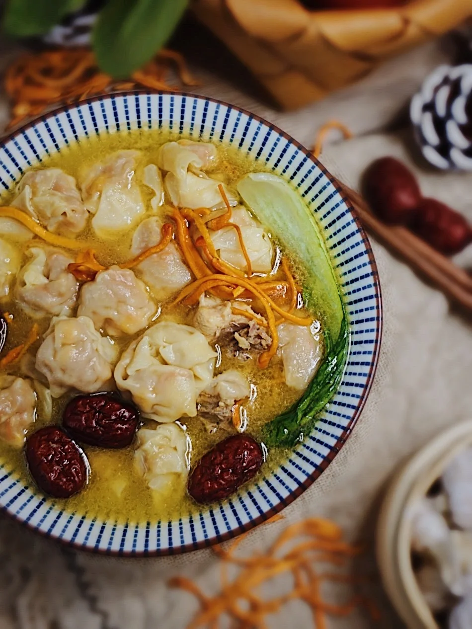 小火煮开以后依次放入红枣、虫草和小馄饨