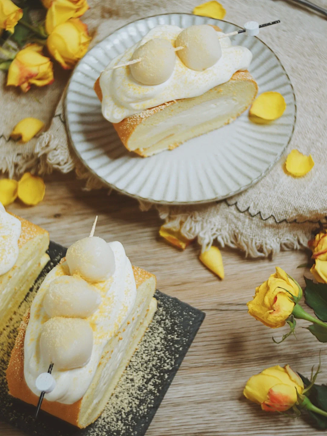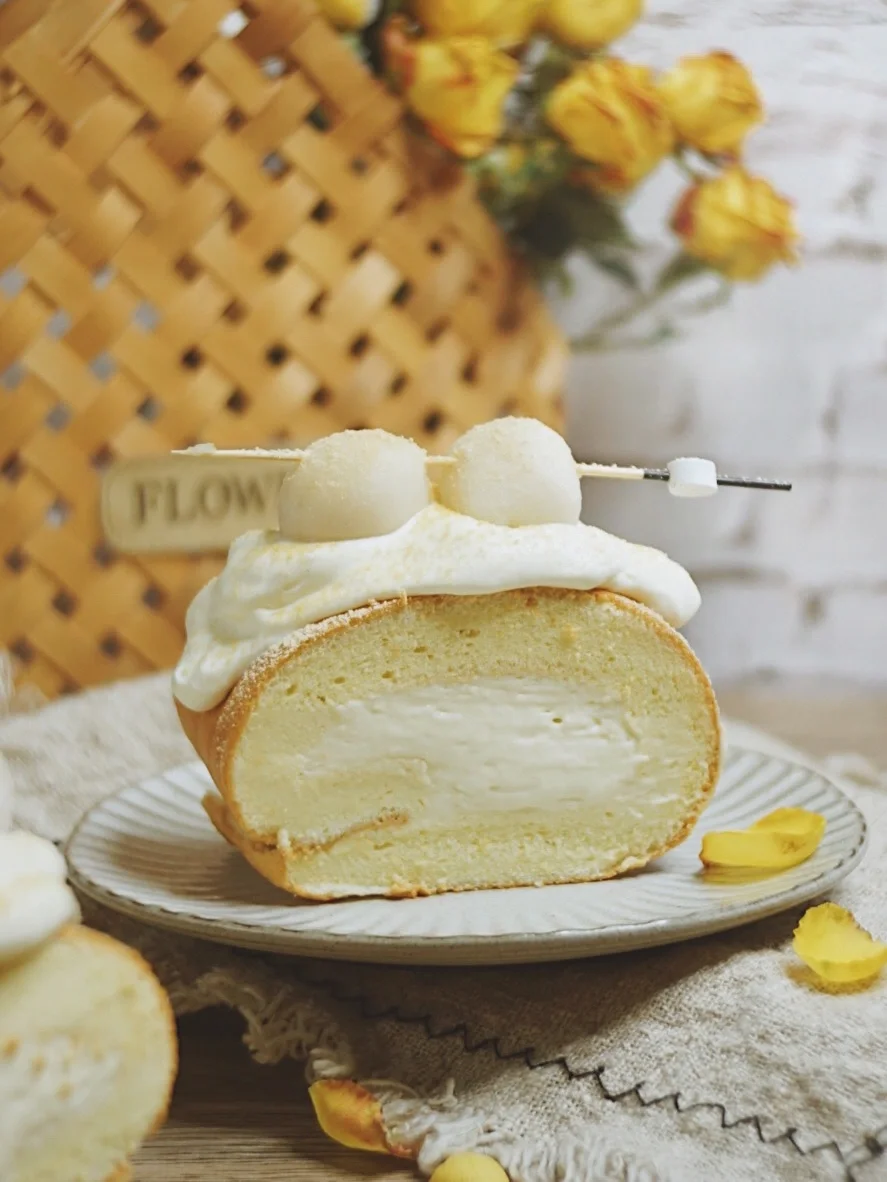 🍡这两年跟豆乳有关的甜品,真是越来越火了🔥尤其是豆乳奶盖配上松软的蛋糕胚。让人忍不住的全部吃掉。今天做的蛋糕卷,里面有了豆奶的加持,松软绵密的同时还有奶油奶酪。表面再配上Q弹的白玉小丸子。网红甜品非他莫属了。