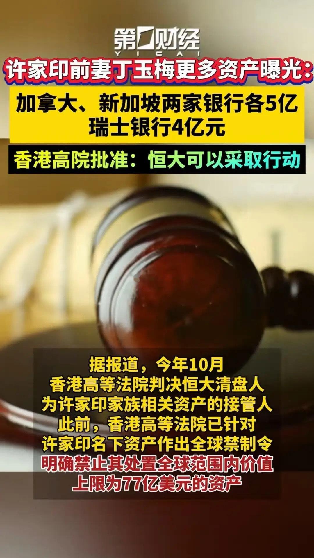 太会藏了啊!许家印前妻丁玉梅的资产真的是遍布全球,做到了“鸡蛋不放在一个篮子里”,她真的是跟债权人玩“躲猫猫”啊!现在又在新加坡,加拿大,瑞士共找出15亿元,之前在英国就曝光有房产和现金高达5.5亿元。另有消息称,她在瑞士银行还有5.7亿美元资产,列支敦士登信托中还隐匿120亿港元现金。遍布全球的房产价值高达25亿人民币,这些资产都在慢慢浮出水面。恒大清盘人还指控她通过离岸信托等方式,隐匿了200—400亿港元的资产,目前其海外大量资产已被多地法院冻结。因此,不管丁玉梅到底有多少资产,最终也会被“牵出萝卜带出泥”查出来,大家都好奇这么多钱究竟是怎么从国内转移出去的,事实证明,丁玉梅确实早就未雨绸缪,做好最坏打算,在跟许家印离婚前就做好了万全准备。不过丁玉梅千算万算,还是没想到,这些财产最终会被法院进行全球追索,迎接终极大清算。许家印前妻丁玉梅更多资产曝光