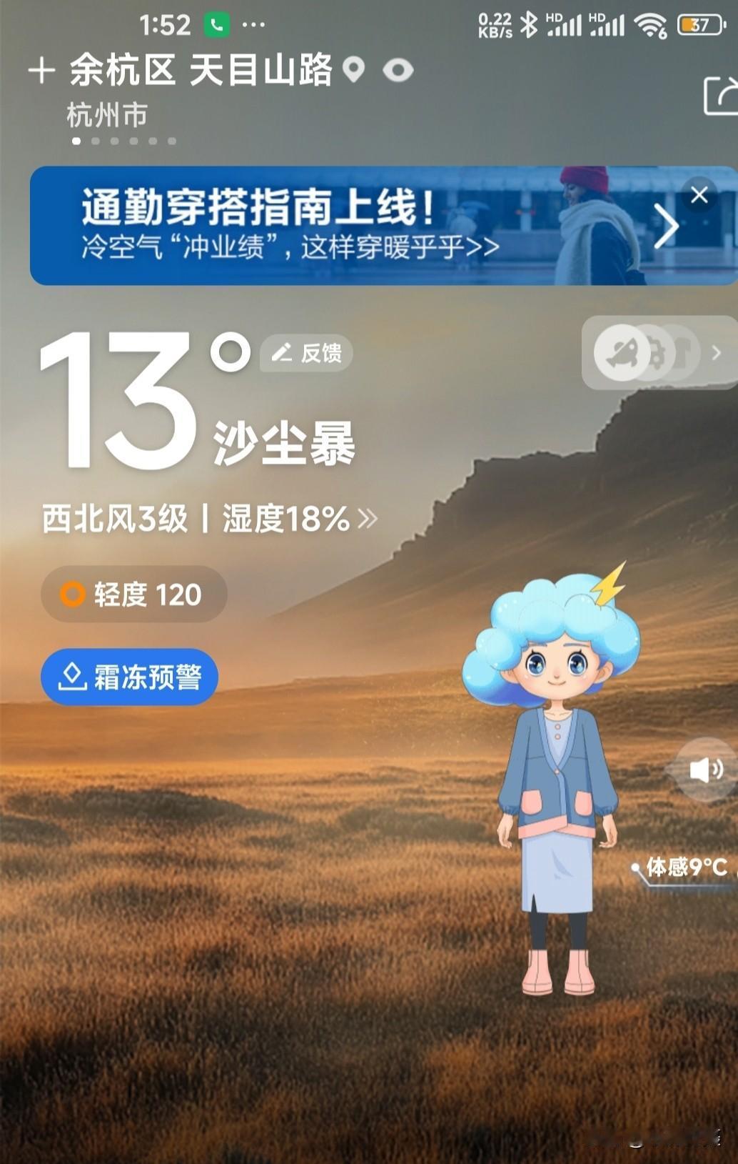 余杭出現罕见的沙尘暴,黄蒙蒙的离谱一天 今天下午开车去余杭,刚拐上天目山路,抬头一看直接懵了!天空居然是那种土黄色,朦朦胧胧的,远处的山和房子都像蒙了层纱,看着特别不真实。我还以为是起雾或者空气太差,随手点开墨迹天气APP,结果上面明晃晃写着“沙尘暴”,我反复确认了三遍,没看错! 真的绝了啊家人们!我在江南待了快十年,印象里只有烟雨朦胧、蓝天白云,顶多偶尔有雾霾,沙尘暴这种“北方限定”居然能让我遇上?开着车都能感觉到风有点大,车窗关着都隐约能闻到点土腥味,路边的行人也都在抬头看天,还有人举着手机拍照,估计跟我一样觉得离谱。 刚才跟朋友发消息说这事儿,他们都以为我看错了,还说“江南怎么可能有沙尘暴”。后来刷了下新闻,才知道是北方的沙尘被大风带着跨了长江,连浙江都没能躲过,而且这次浓度还不低,PM10都飙到好几百了 。专家说江南平时顶多遇到点浮尘,沙尘暴真的特别罕见,我这算是赶上“活久见”系列了! 赶紧把车窗关得严严实实,空调也切成内循环,生怕沙尘飘进车里。希望这沙尘赶紧过去,还是喜欢江南清清爽爽的天气,这黄蒙蒙的天看着太没安全感了,出门都得记得戴口罩才行~户外沙尘暴 沙尘暴天气预报