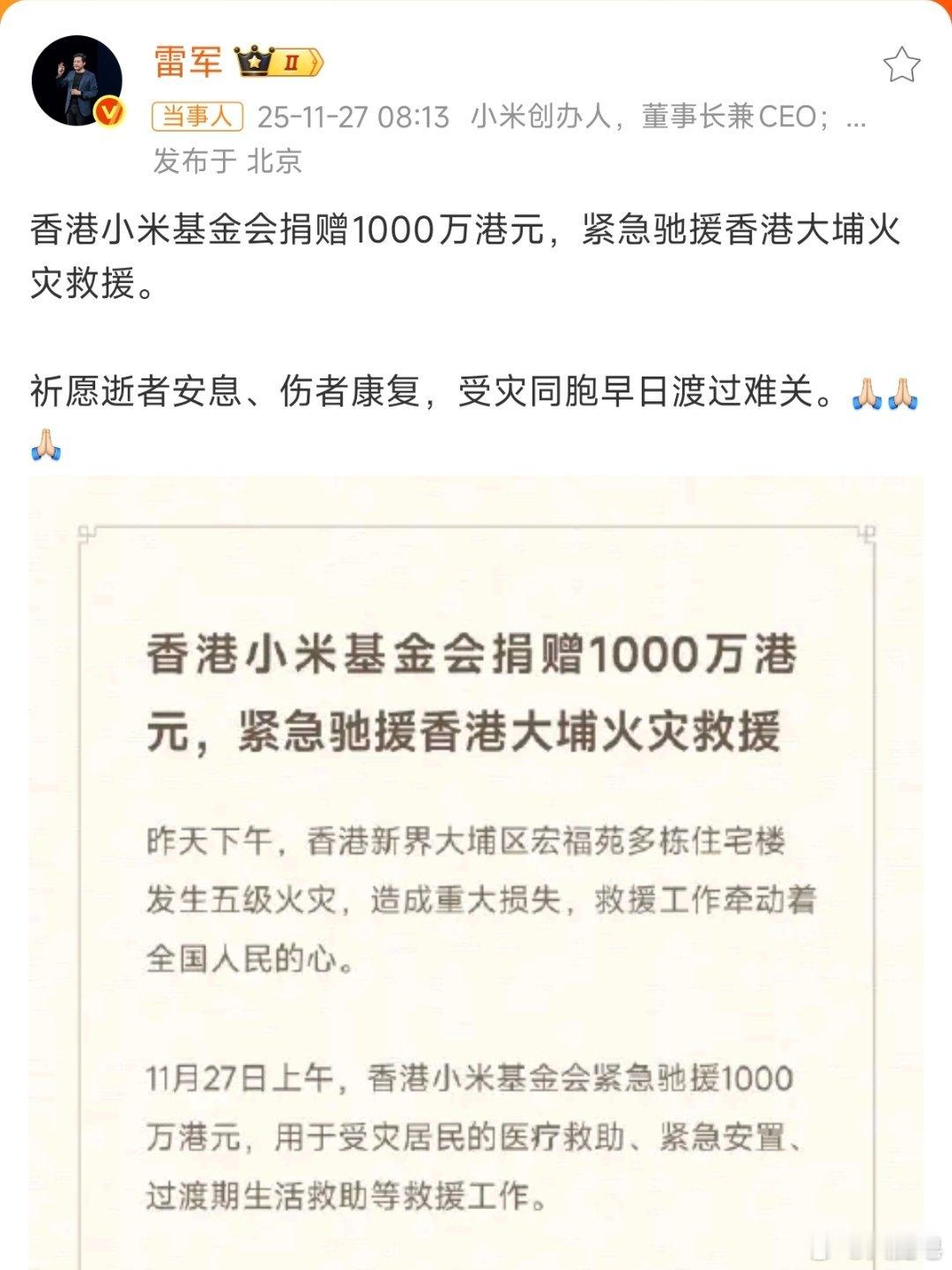 多家车企为香港火灾捐款 这才是大车企的担当,希望这些钱可以帮助到香港受灾群众,也