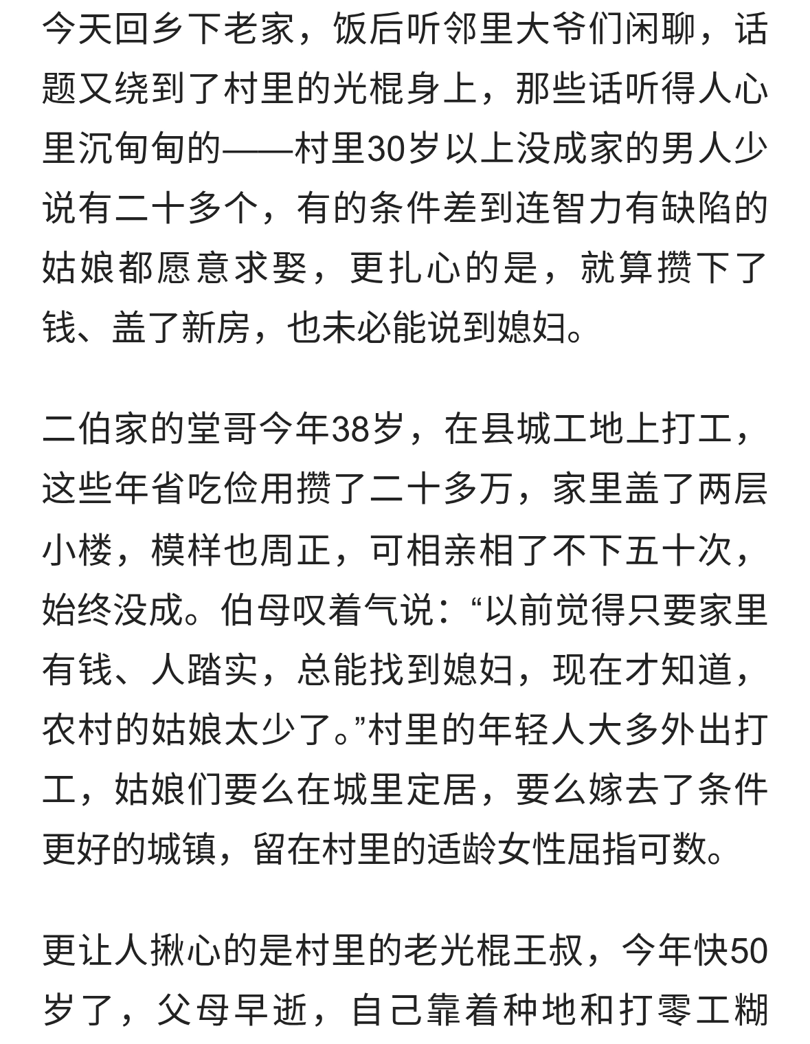 光棍越来越多,不论城市或者农村,光棍已经成了社会不稳定的因素之一了,光...