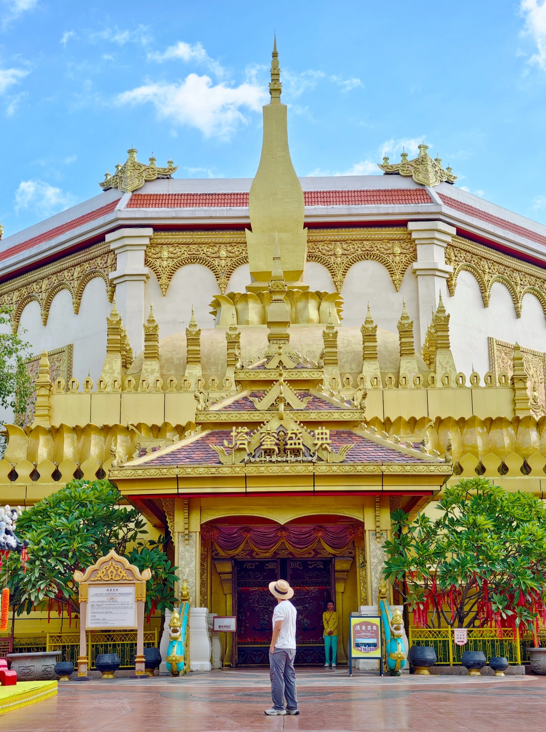 老挝风情的治愈系场景!蓝天白云 + 标志性建筑简直是绝配,开阔的广场特别适合拍全身照