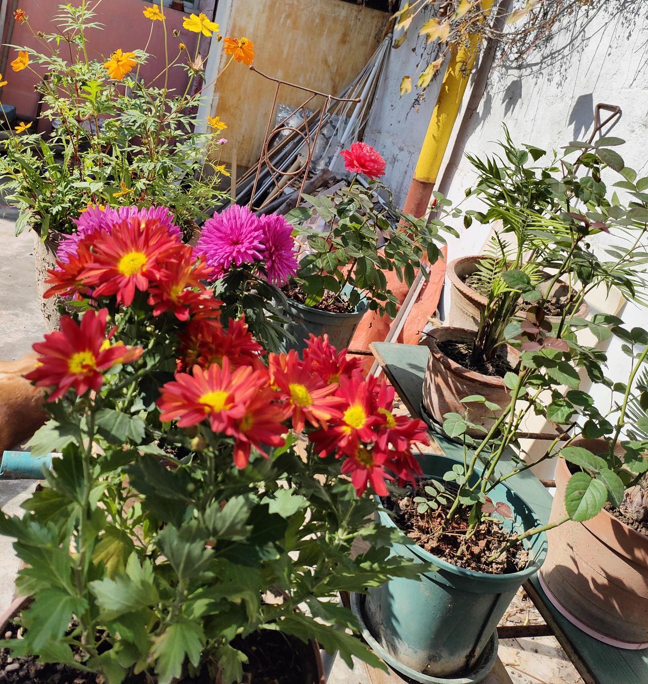 浅冬未寒阳光照, 草木不衰姿色好。 赤橙青黄泛五彩, 装扮大地也妖娆。