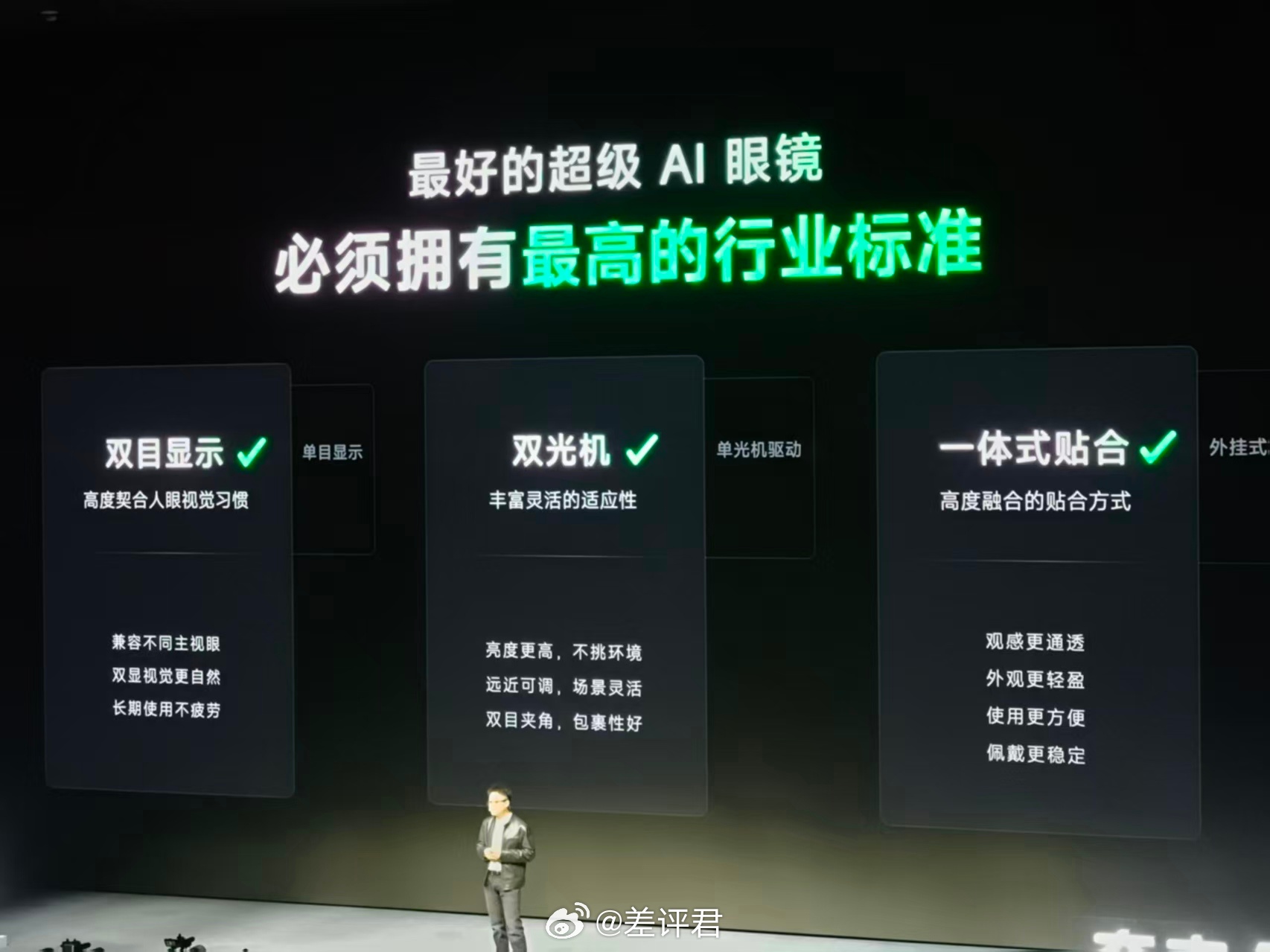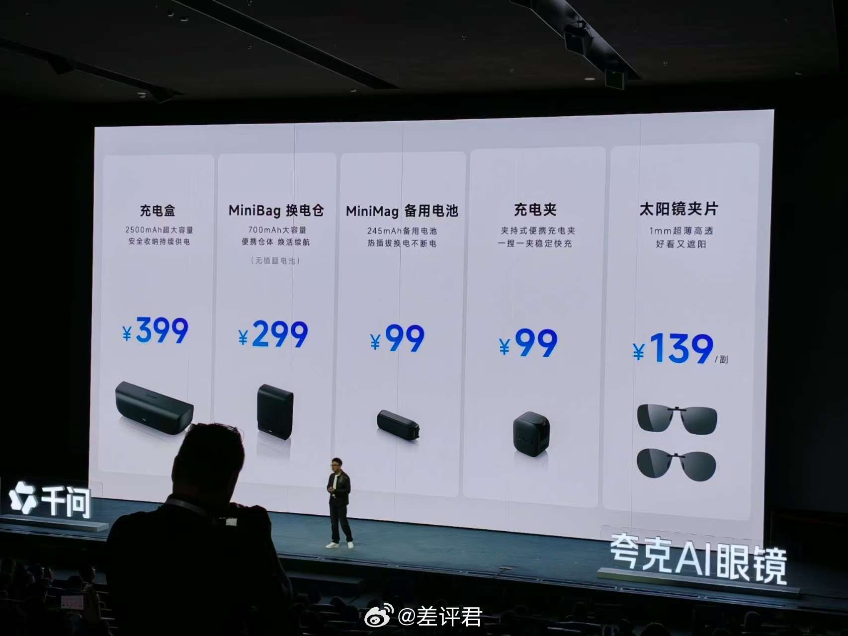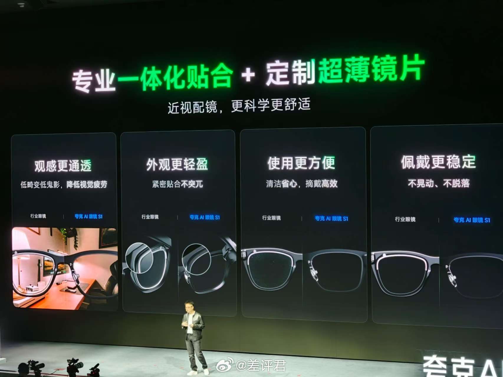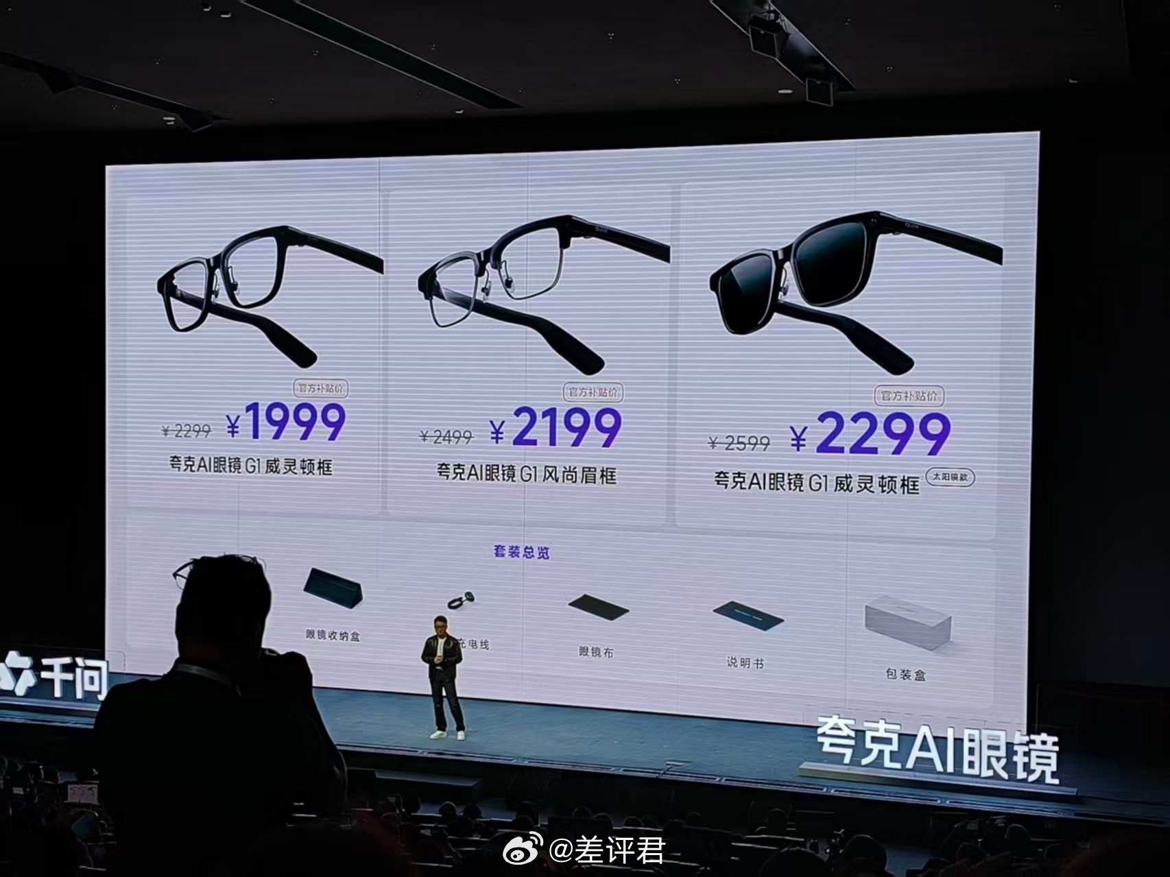 #差评说数码# 夸克 AI 眼镜正式发布,这次一共有两个系列,这价格大家觉得怎么样:S1(带光波导),3799 元起。G1(轻便,不带显示功能),1899 元起。感觉 S1 这眼镜的形态挺合理的,镜腿不是很粗,配重往耳朵后面移,而且镜腿末端的电池是可以直接“换电”的,算是变相解决了这类产品的续航焦虑。 G1 的话基本和普通眼镜没啥区别了。线下很多眼镜店都能体验,感觉就是当做一款“眼镜产品”而非数码产品去打了