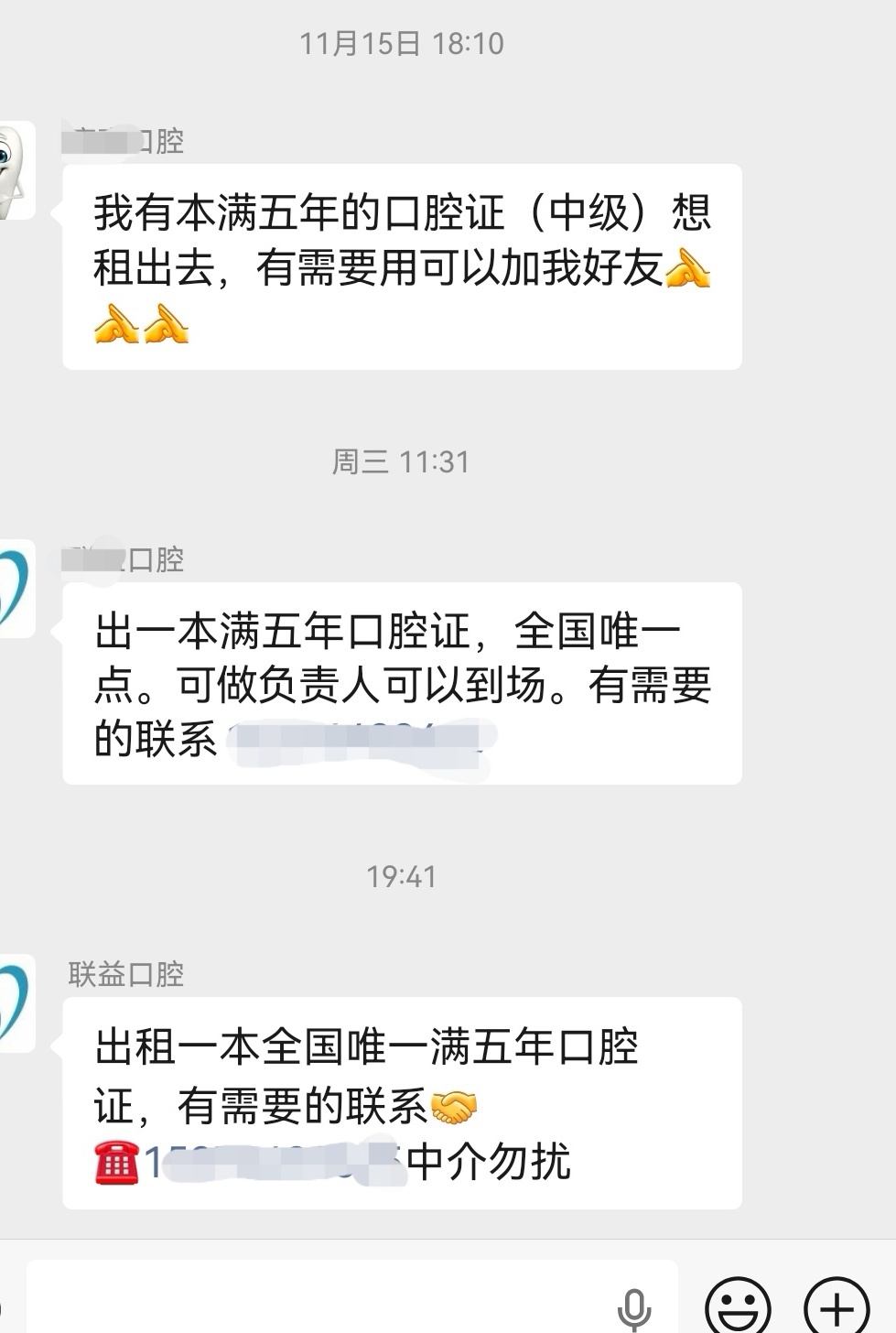 这可是犯法的呀。听说租一年大几万,对有的牙医而言比上班收入还高。如此值钱的执业证,也只有口腔行业挂靠的多。