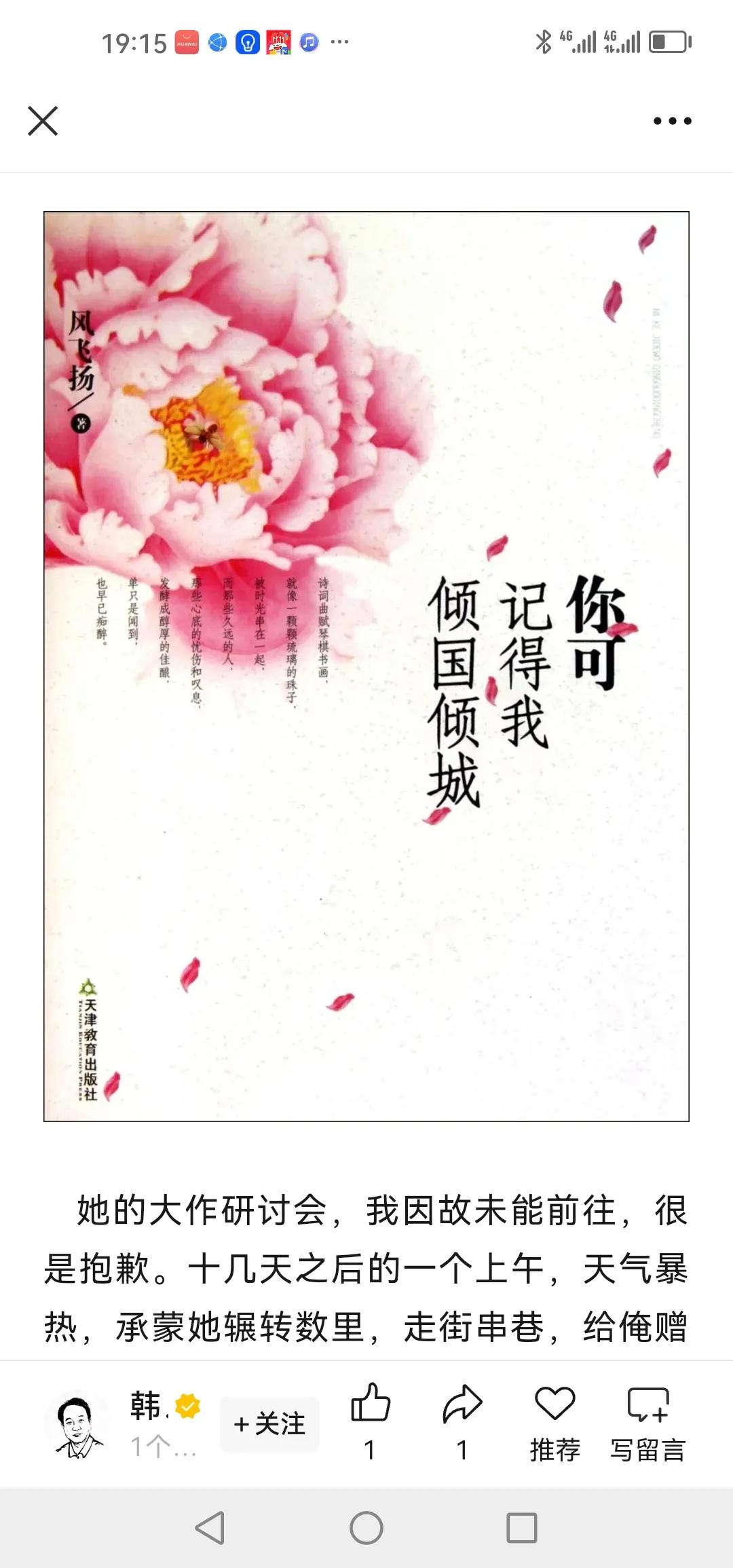 既然心底感到了丝丝的缥缈的茫然,那就从眼前写起吧。——电脑桌前,放着风飞扬的大著《你可记得我倾国倾城》。素雅的封面上,开着一朵魇魇的花。一片一片红唇一样的花瓣,似乎从梦海深处飞来,飘飘悠悠,随风洒落……“情之所至,一往而深。从来不曾觉得红尘散漫,反而珍惜得如此温良,每当静下来,心里都会生出一种轻叹的感慨,能以一个女子的柔肠和心思走过绵密的人间岁月,指尖裙角不经意间扫过繁华里的一点静默却是那样的喜悦,婉转在心里,终成挚爱……”