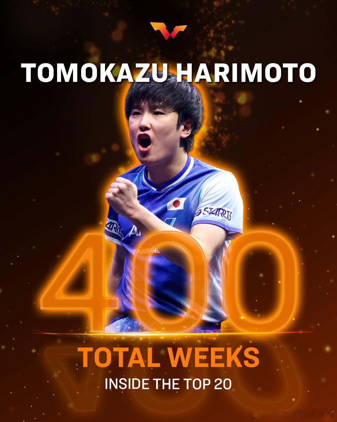 张本智和进入 ITTF世界排名Top20已达400周。cr: WTT