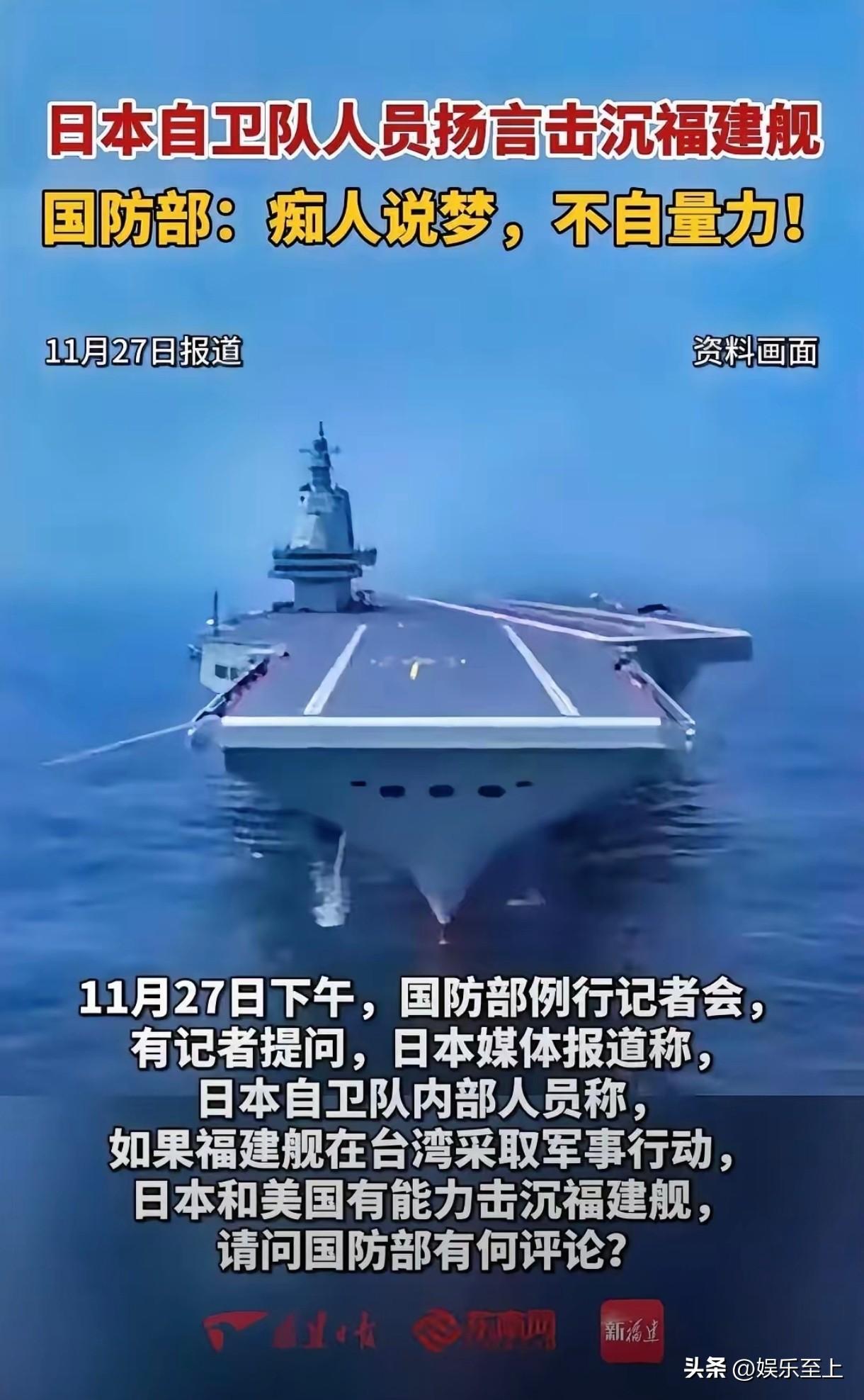日本已经崩溃了, 精神错乱了, 日本自卫队人员发言有能力击沉福建舰。 小日本从50年以来尽管受到了国际上的管控,但它们私下建造的武器被美国包容。谁也说不准它们存没有毁灭性的武器。日海自现有装备已超出了自卫的需求,具有攻击性,按《联合国宪章》规定,应予以缴械。